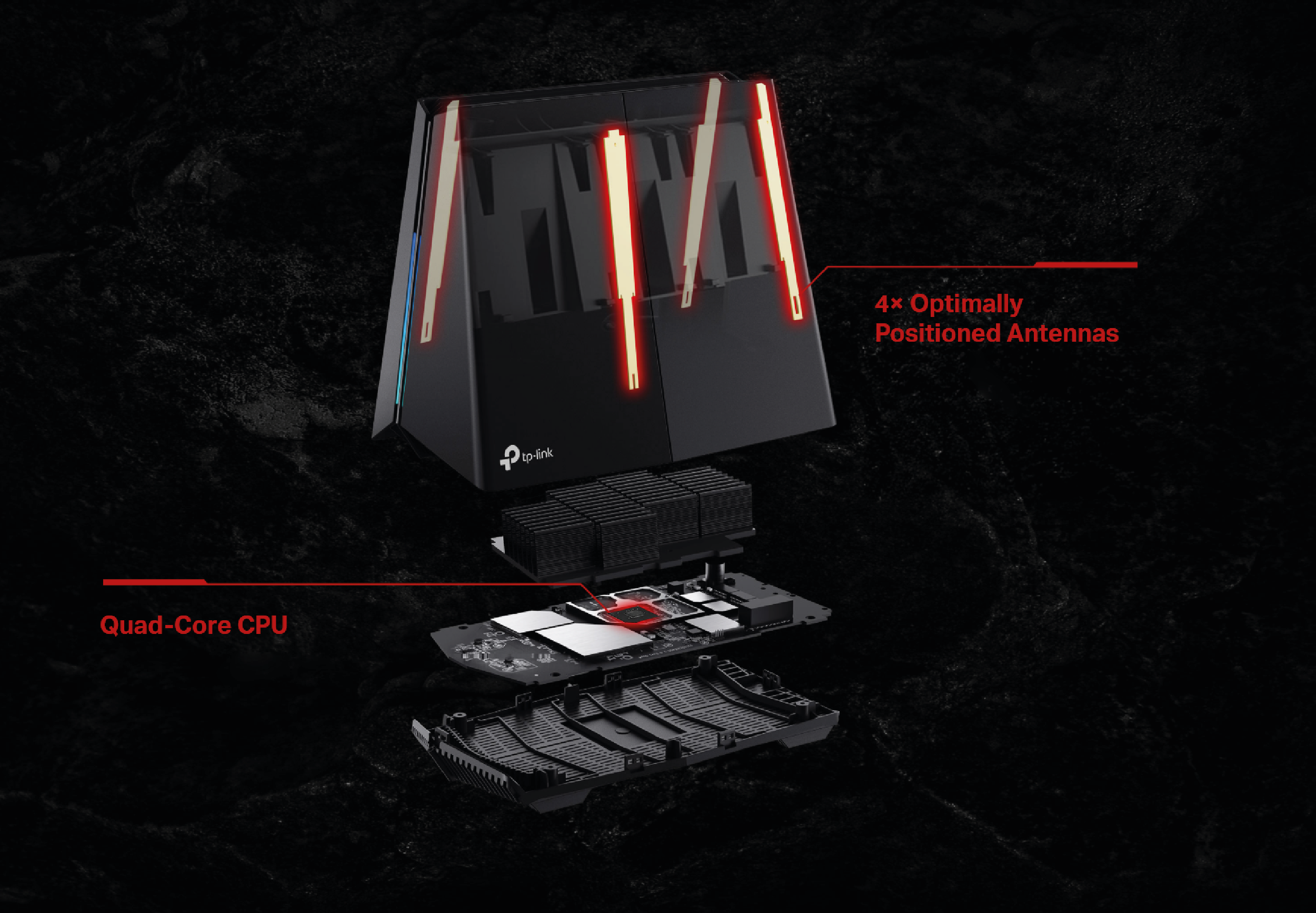4 optymalnie ustawione anteny. Ciesz się nieprzerywanymi rozgrywkami w każdym miejscu domu, dzięki 4 antenom, autorskiej optymalizacji Wi-Fi i technologii Beamforming.