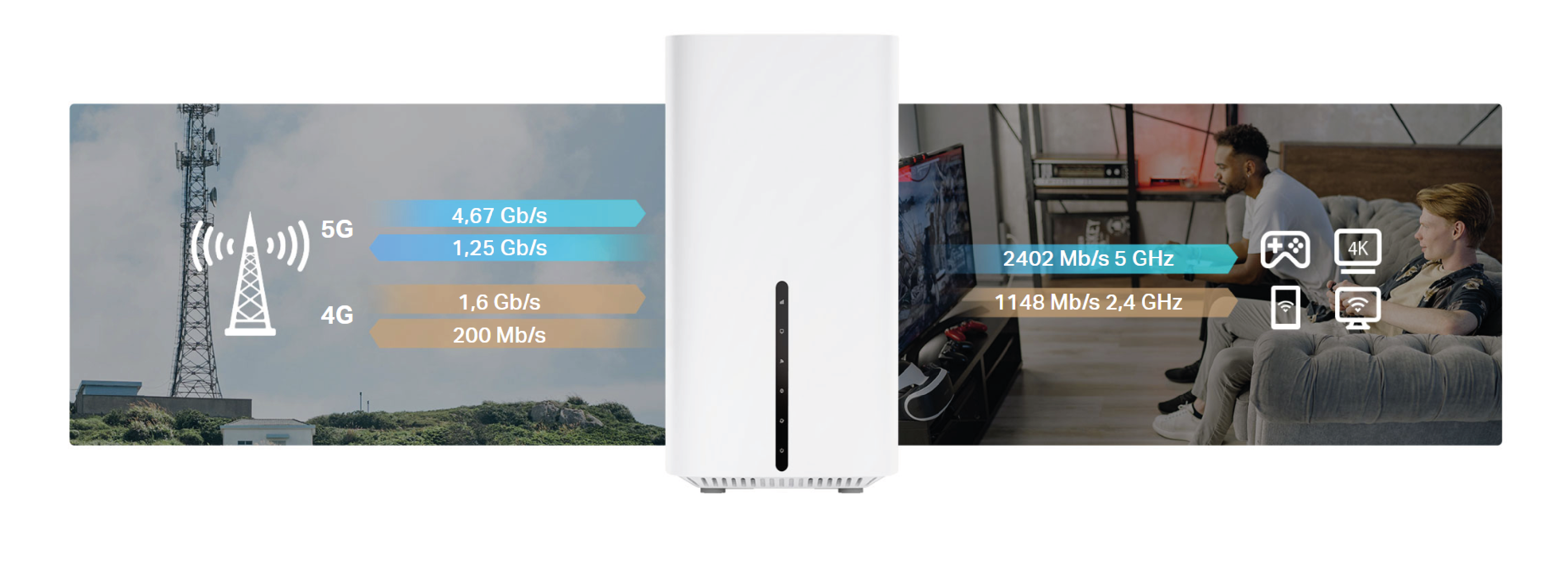 do 4,67 Gb/s. Udostępnij swoją sieć 5G wielu urządzeniom Wi-Fi i ciesz się nieprzerwanymi filmami w jakości Ultra HD, niesamowicie szybkim pobieraniem plików, płynnymi rozmowami wideo oraz wideokonferencjami. NX600 jest wstecznie kompatybilny z siecią 4G.
