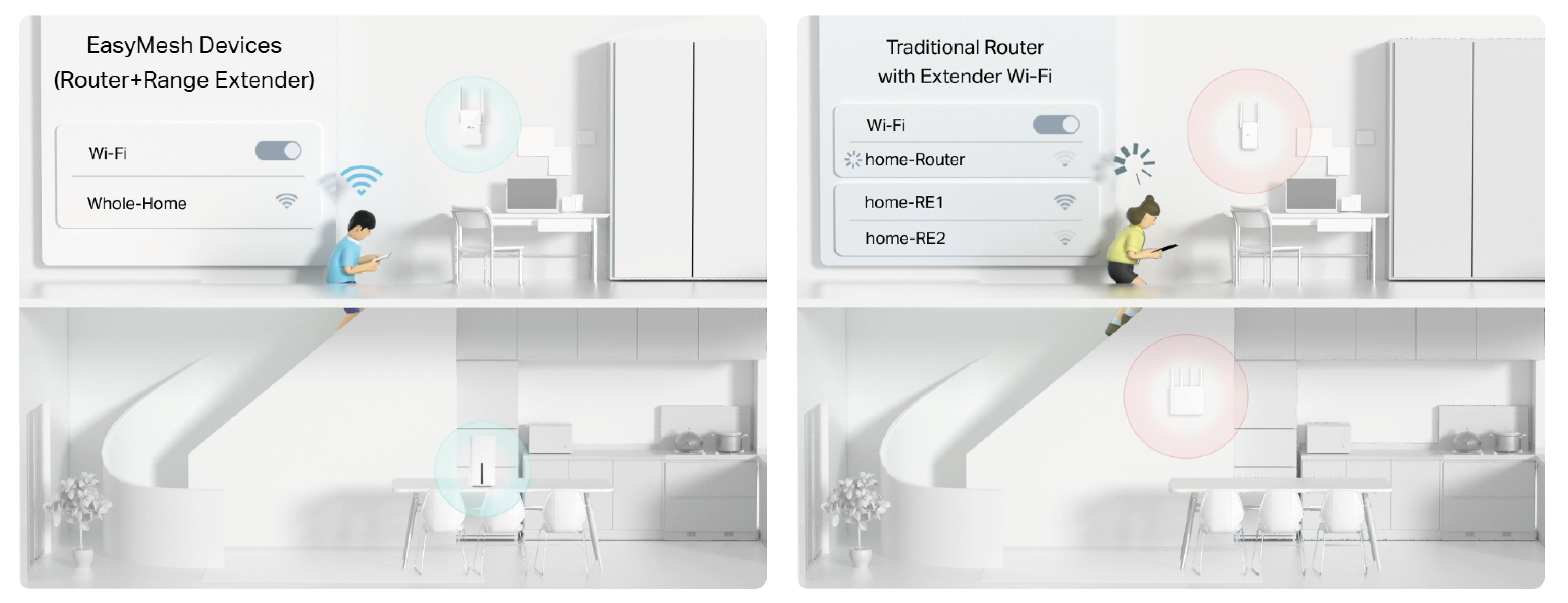 Jeśli w Twoim domu występują martwe strefy zasięgu, wystarczy, że dodasz router lub wzmacniacz sygnału kompatybilny z EasyMesh, aby rozbudować wielogigabitową, domową sieć Wi-Fi Mesh. Zapomnij o szukaniu stabilnego sygnału połączenia.