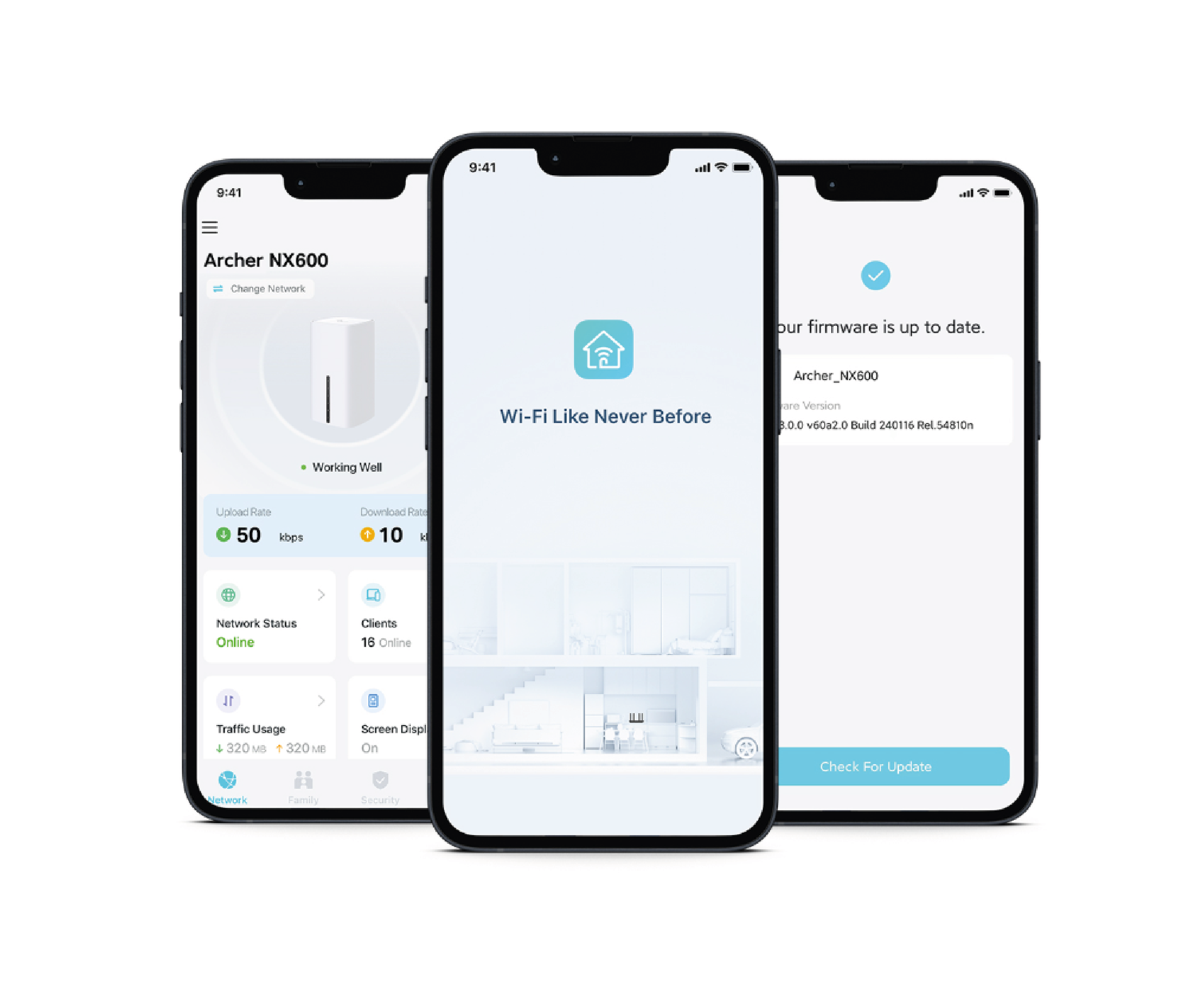 Konfiguracja routera Archer NX600 trwa zaledwie kilka minut. Wystarczy, że zalogujesz się do strony zarządzania lub pobierzesz aplikację Tether. Dostęp do ustawień sieci, w tym kontroli rodzicielskiej czy też kontroli dostępu zyskasz z dowolnego urządzenia z systemem Android lub iOS. Aplikacja Tether umożliwia również wykonywanie aktualizacji oprogramowania do najnowszej wersji, aby utrzymać najwyższą wydajność i bezpieczeństwo routera.