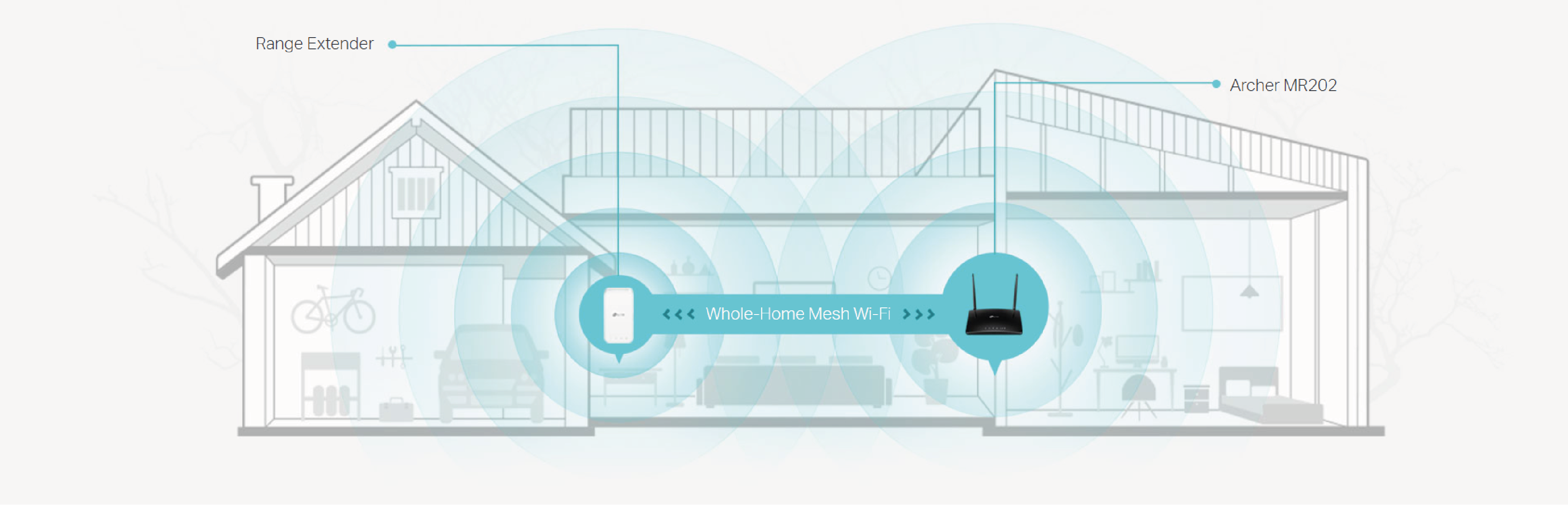 Współpraca produktów TP-Link OneMesh zapewnia dostęp do elastycznej i przystępnej cenowo sieci Mesh, z jedną nazwą WiFi, płynnym roamingiem i pokryciem sygnału na cały dom.
