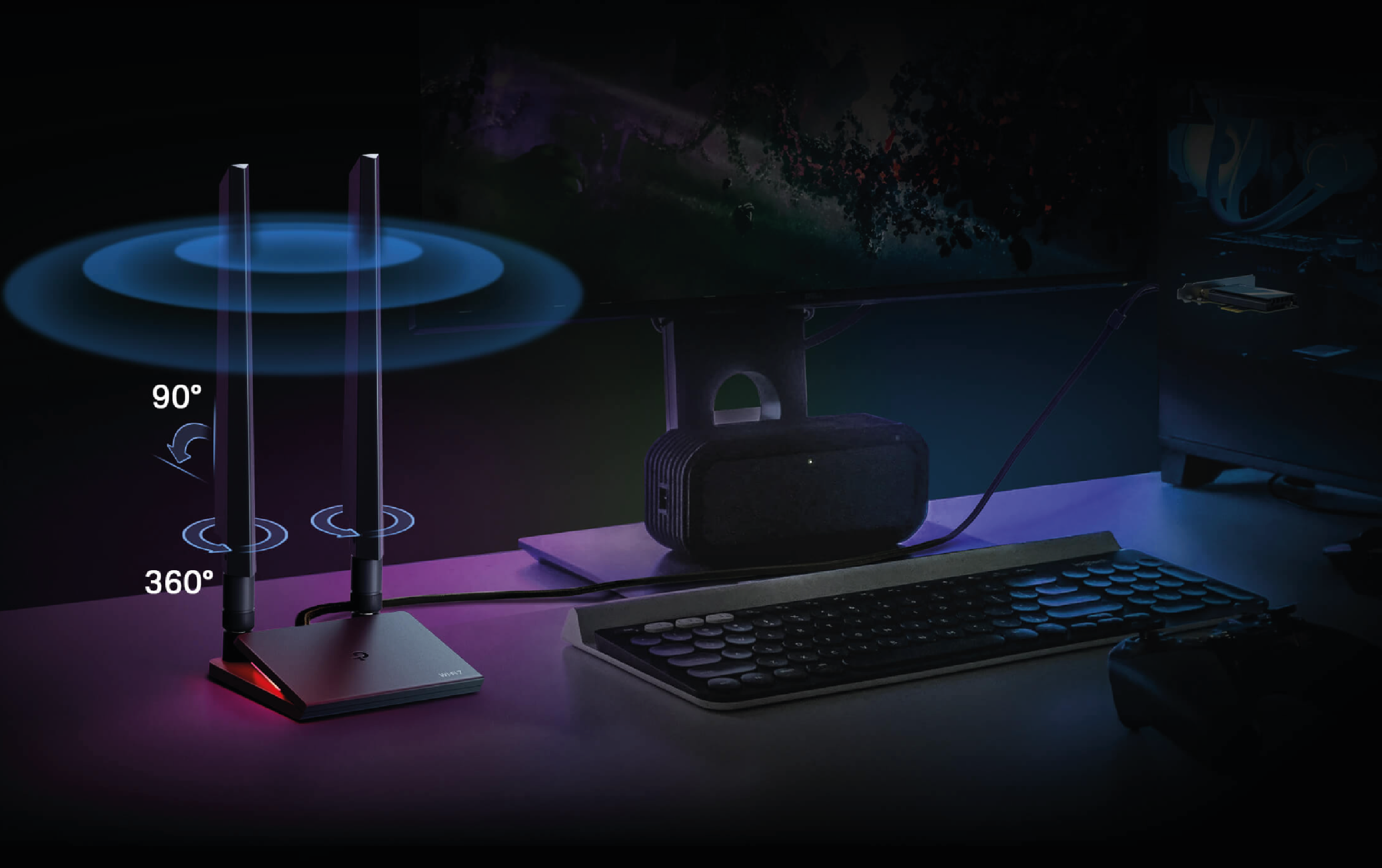 Archer TBE550E posiada dwie wielokierunkowe i wysokowydajne anteny z magnetyczną podstawką. Umieść podstawę anteny w dowolnym miejscu na biurku, aby znaleźć optymalną lokalizację do odbioru sygnału.