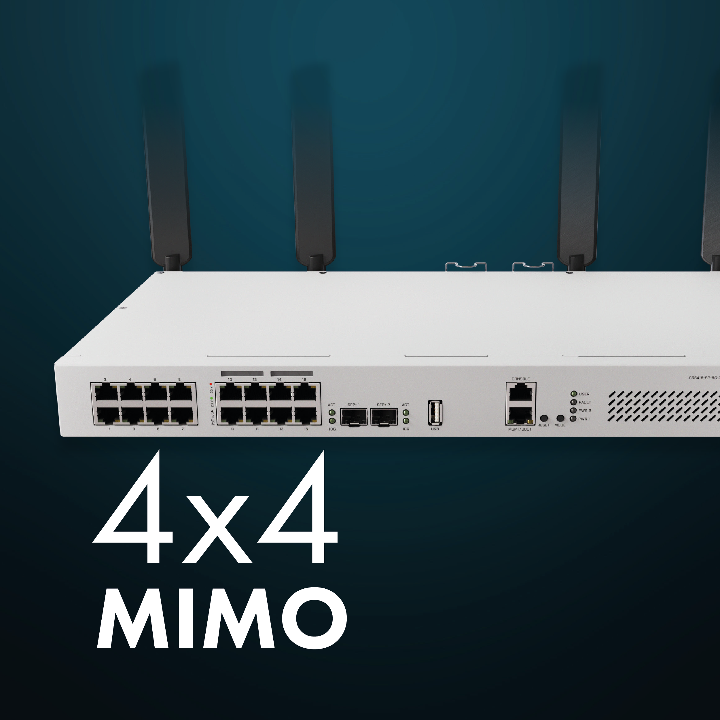 MikroTik CRS418-8P-8G-2S+5axQ2axQ-RM to wyjątkowe urządzenie, które łączy w sobie funkcje routera, switcha oraz punktu dostępowego. Może transmitować sieć bezprzewodową Wi-Fi 6, korzysta z protokołów IEEE 802.11 b/g/n/ax w paśmie 2,4 GHz i IEEE 802.11 a/n/ac/ax w 5 GHz. W obu pasmach obsługuje 4x4 MIMO, co przekłada się na lepszą prędkość Wi-Fi w standardowych routerach 2x2 MIMO. CRS został wyposażony w wydajny, czterordzeniowy procesor IPQ-8072A o taktowaniu 2208 MHz oraz 1 GB pamięci RAM DDR3. Zapewnia znacznie lepszą wydajność routingu i innych funkcji L3 od popularnych urządzeń z serii CRS320 i CRS328.