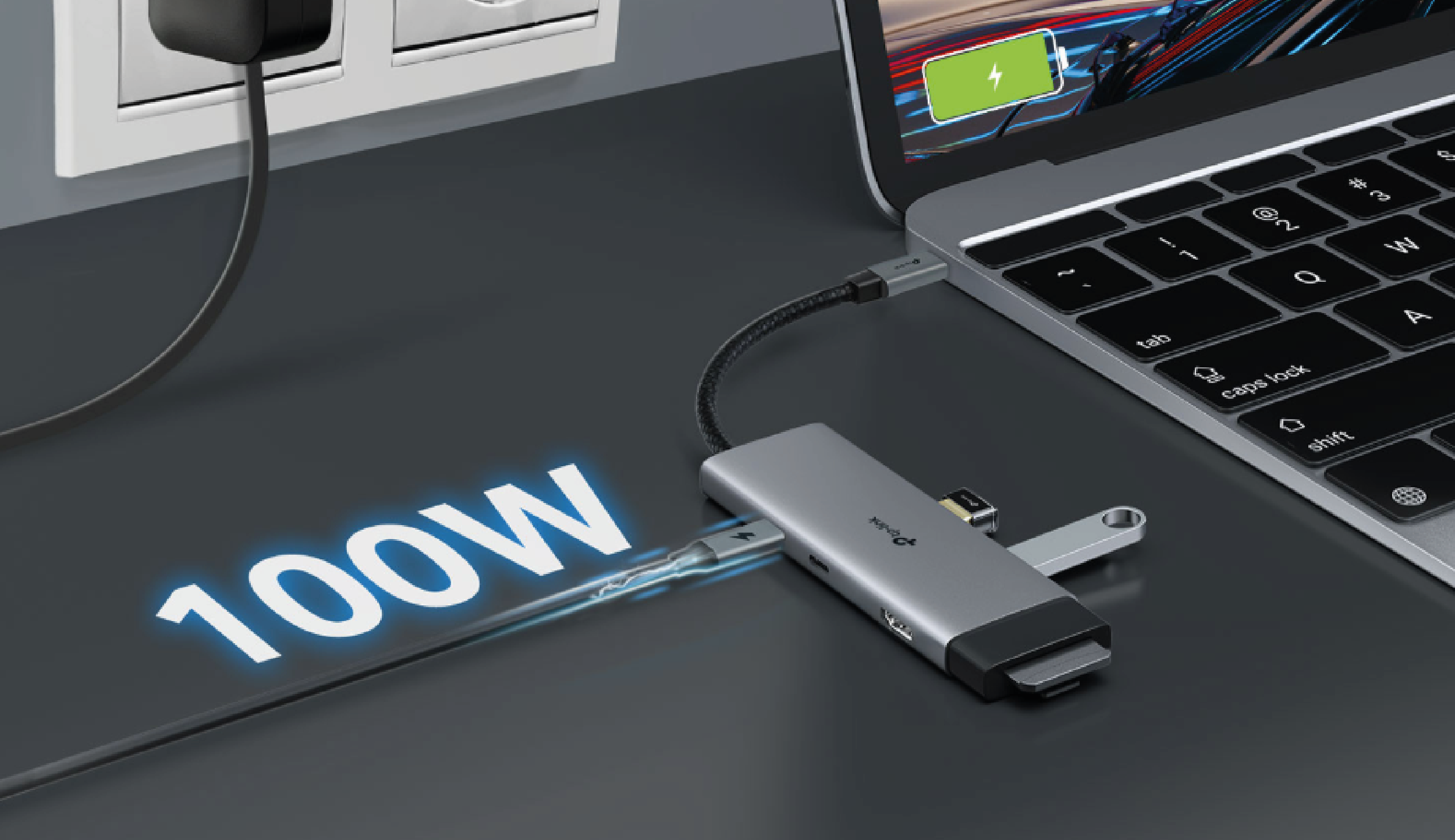 Podłącz kabel zasilający do UH7020C i dostarcz do 100W ciągłej mocy dla swojego laptopa podczas transferu plików lub strumieniowania mediów.
