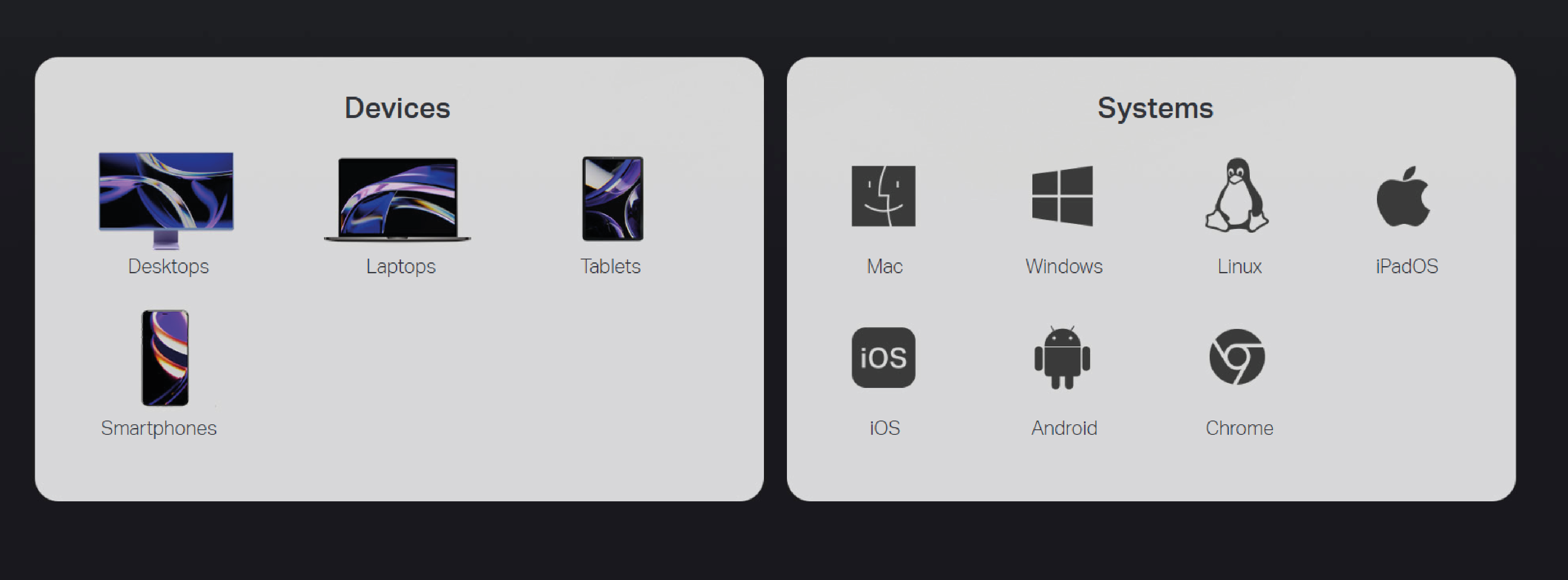 | Wspierane systemy operacyjne | macOS Windows 7/8/8.1/10/11 Linux iPad OS iOS Android Chrome OS |