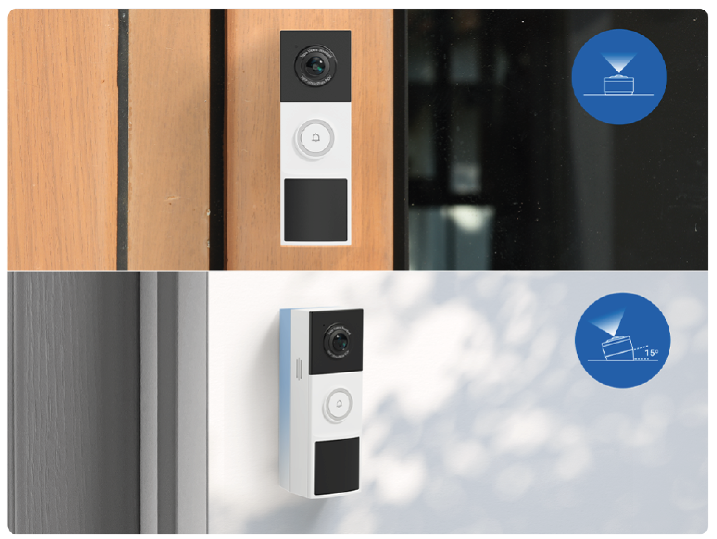 Klin dołączony do zestawu umożliwia Ci przechylenie dzwonka do drzwi, aby uzyskać optymalny kąt widzenia na monitorowany obszar.