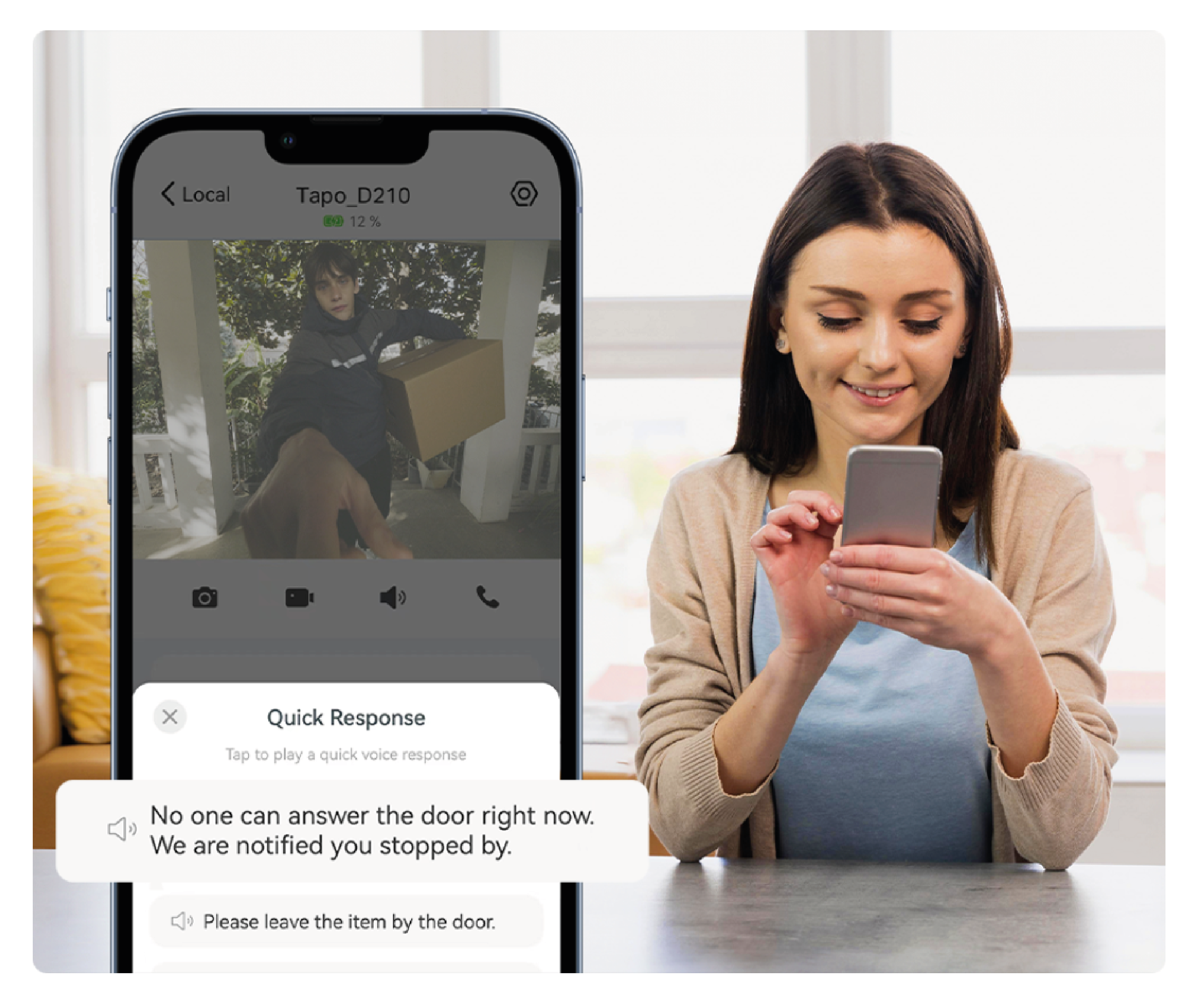 TP-Link Tapo D210 to inteligentny wideodzwonek do drzwi nagrywający obraz w jakości 1080p Full HD, zapewniający wyraźny podgląd wejścia. Wyposażony w szerokokątny obiektyw umożliwia rejestrowanie szczegółów otoczenia, a dzięki łączności Wi-Fi 2,4 GHz nie wymaga okablowania sieciowego. Obsługuje zasilanie bateryjne, co ułatwia montaż w dowolnym miejscu. Wbudowany mikrofon i głośnik pozwalają na dwukierunkową komunikację głosową, a aplikacja Tapo dla Android i iOS umożliwia szybki dostęp do obrazu na żywo, powiadomień i nagrań. Urządzenie współpracuje z hubem Tapo H200, oferując zapis materiałów na karcie microSD lub w chmurze Tapo Care, a solidna obudowa gwarantuje niezawodną pracę w różnych warunkach pogodowych.