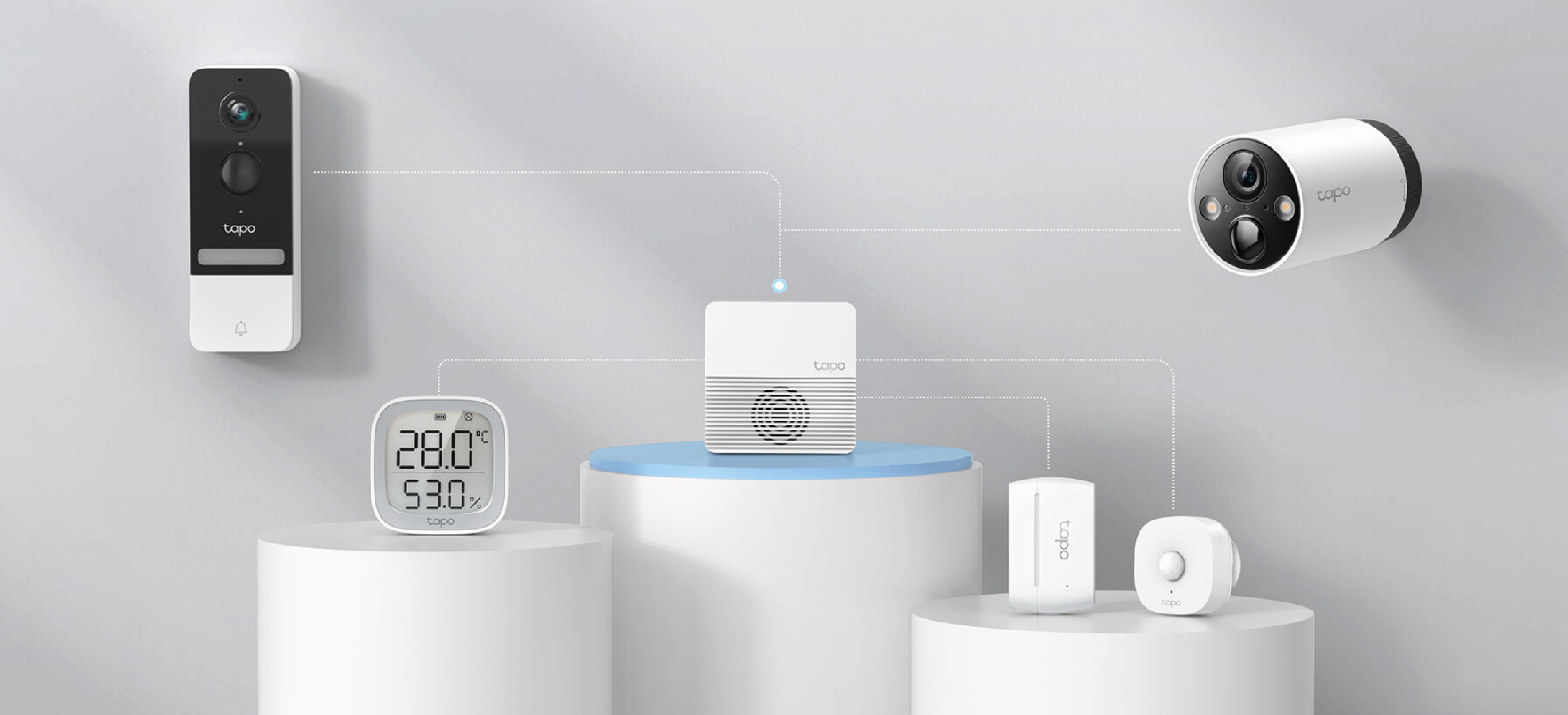 Skorzystaj z Huba jako inteligentnego alarmu lub dzwonka, aby chronić bezpieczeństwo swojego domu poprzez koordynowanie kamer, wideodzwonków do drzwi, czujników, przycisków i wielu innych urządzeń Tapo*.