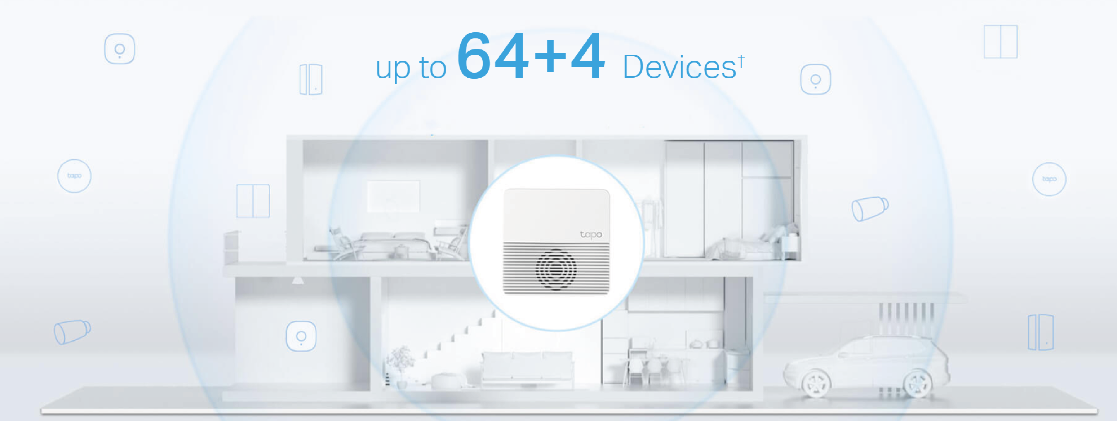Połącz do 64 wyłączników, czujników i przycisków Sub-1G + 4 kamery lub wideodzwonki do drzwi.