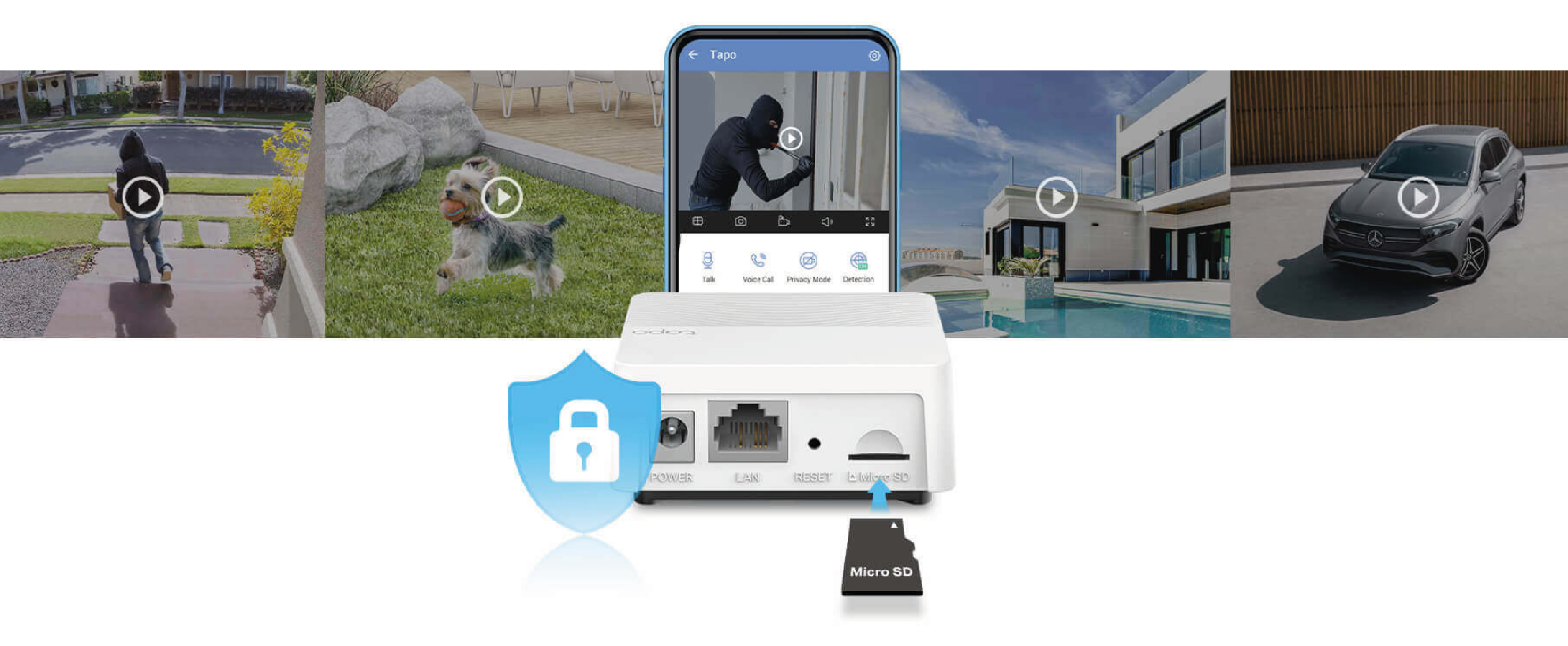 Zapisuj nagrane zdarzenia ze swoich kamer lub wideodzwonków do drzwi na karcie microSD zamontowanej w Hubie (do 512 GB), aby niczego nie przegapić.