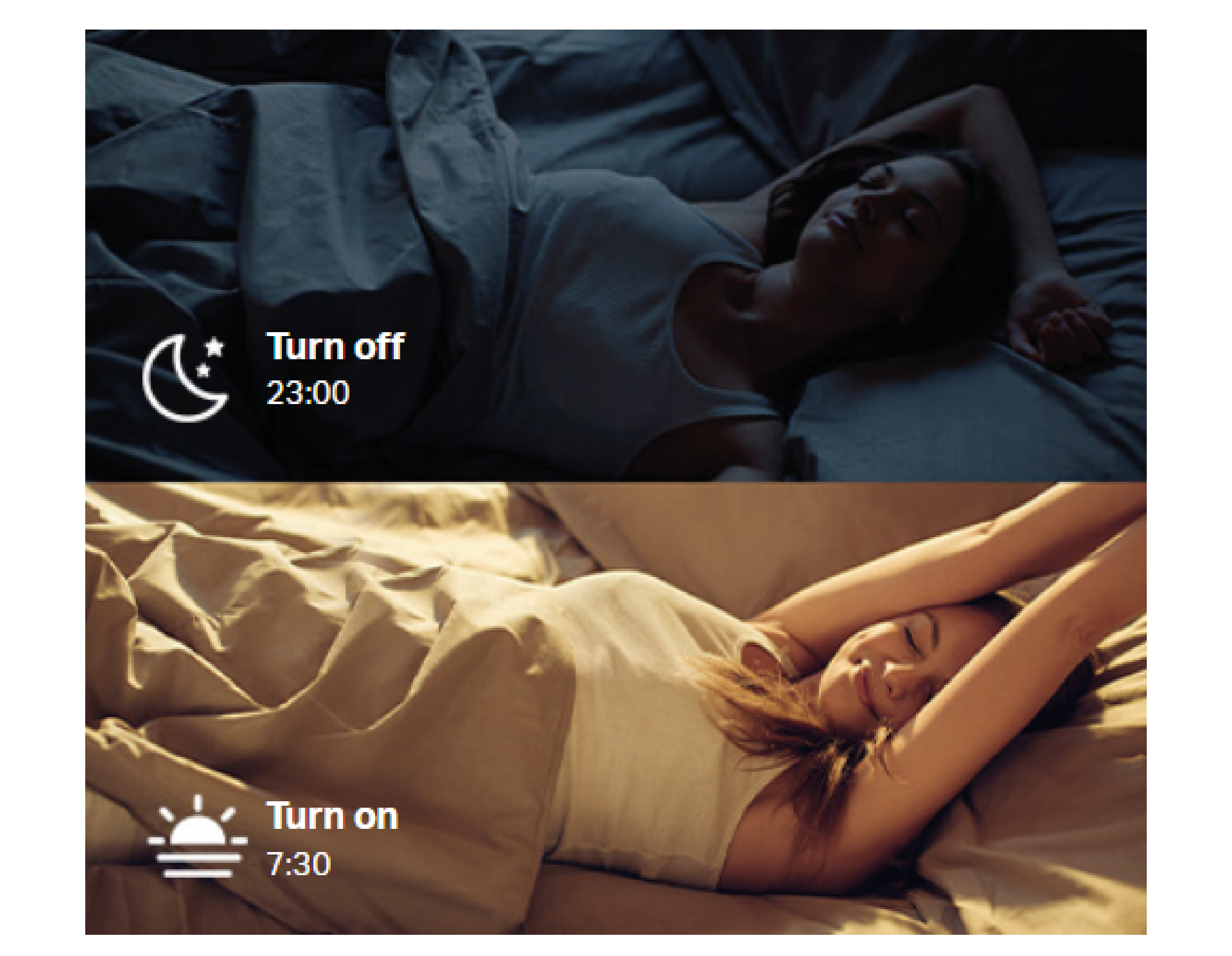 Zapomnij o błądzeniu po ciemku w korytarzu lub sypialni. Oświetlenie włączy się automatycznie, gdy przejdziesz w zasięgu czujnika ∆ sparowanego z Twoim Hubem. Twórz akcje smart i ciesz się automatyką domu!