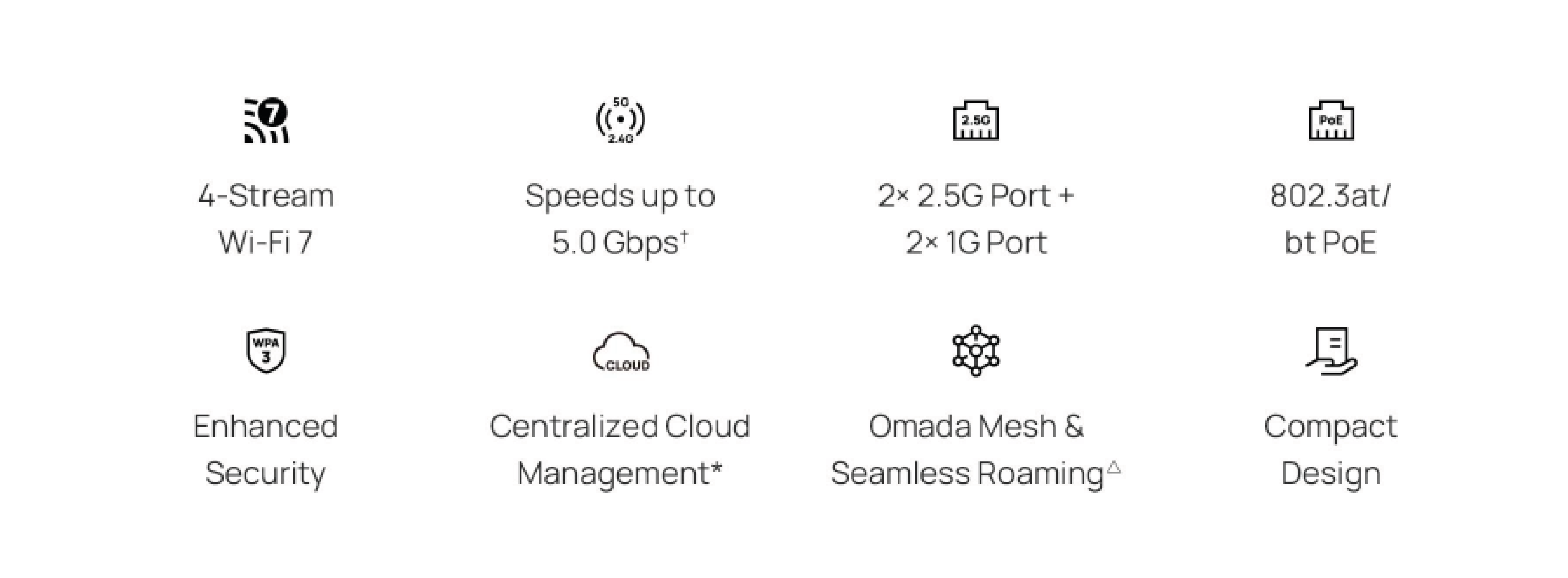 Port Ethernet o prędkości 2,5Gb/s zastosowany w EAP723 zapewnia wielogigabitową wydajność dla szybkiego Wi-Fi.