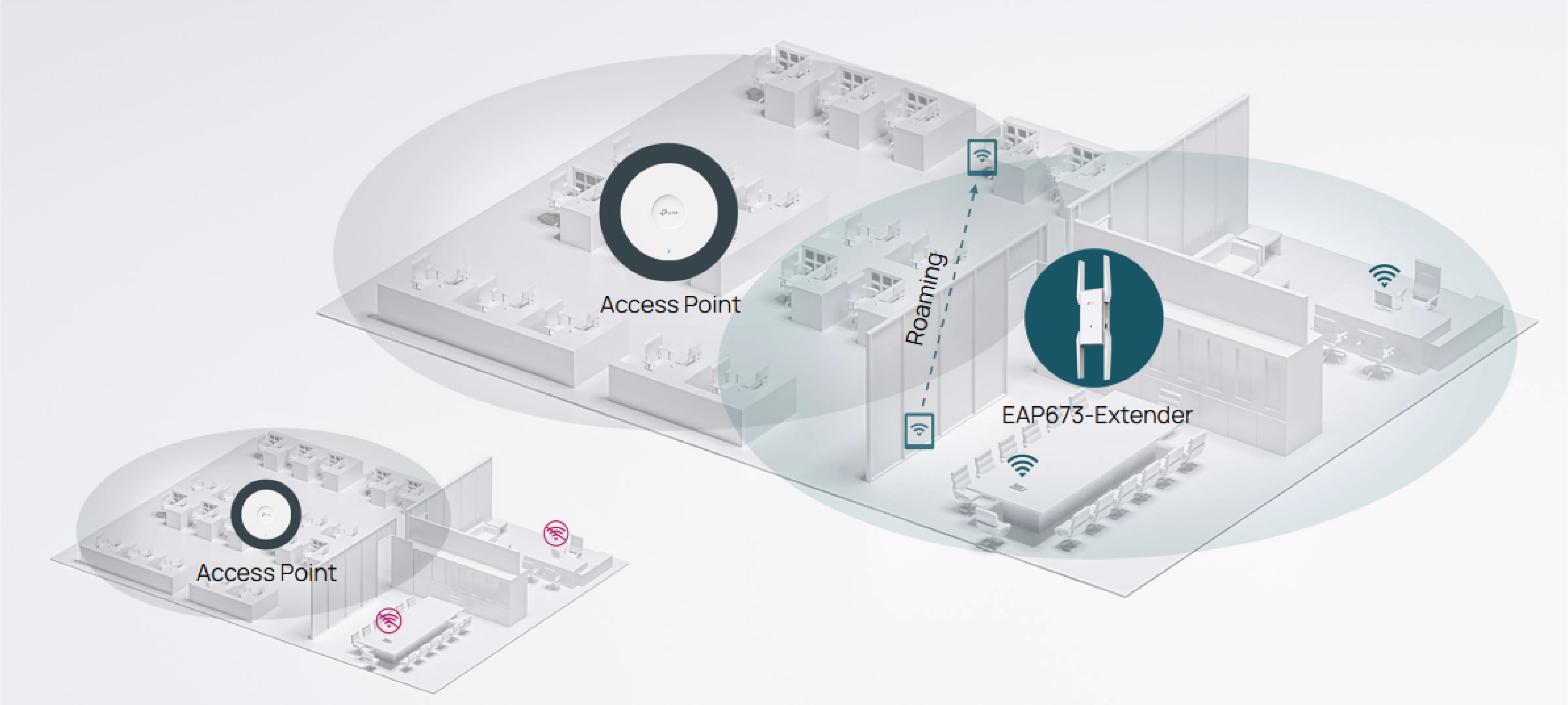 Wbudowany tryb punktu dostępowego w EAP673-Extender oferuje mocny i stabilny sygnał sieci Wi-Fi, bez konieczności stosowania przełącznika PoE, czy modernizacji infrastruktury. Ta funkcjonalność zwiększa również elastyczność i obniża koszty wdrożenia.