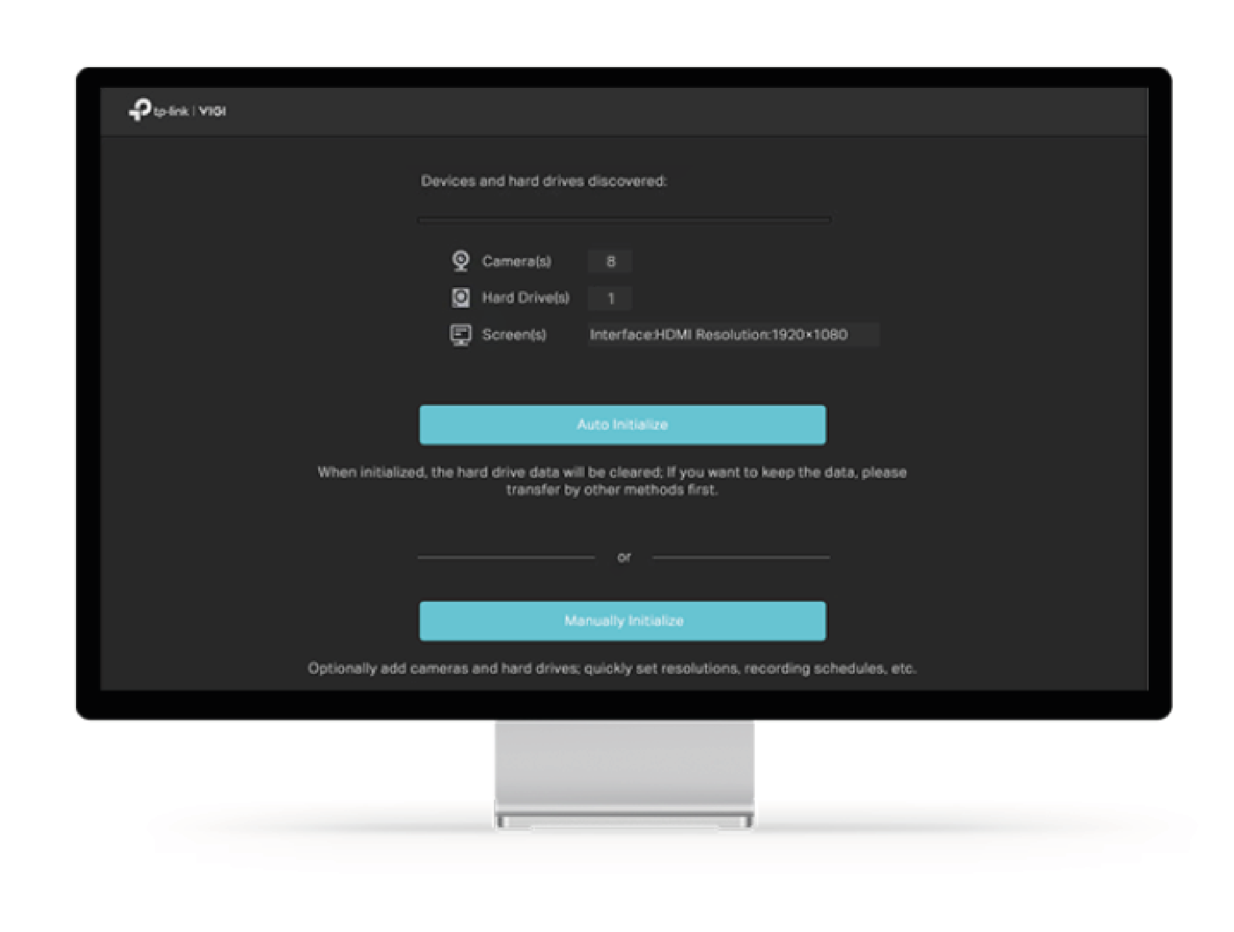 Wystarczy kliknąć "Automatyczna inicjalizacja", aby skonfigurować podstawowe parametry kamery i dysku twardego, znacznie skracając czas potrzebny na konfigurację.