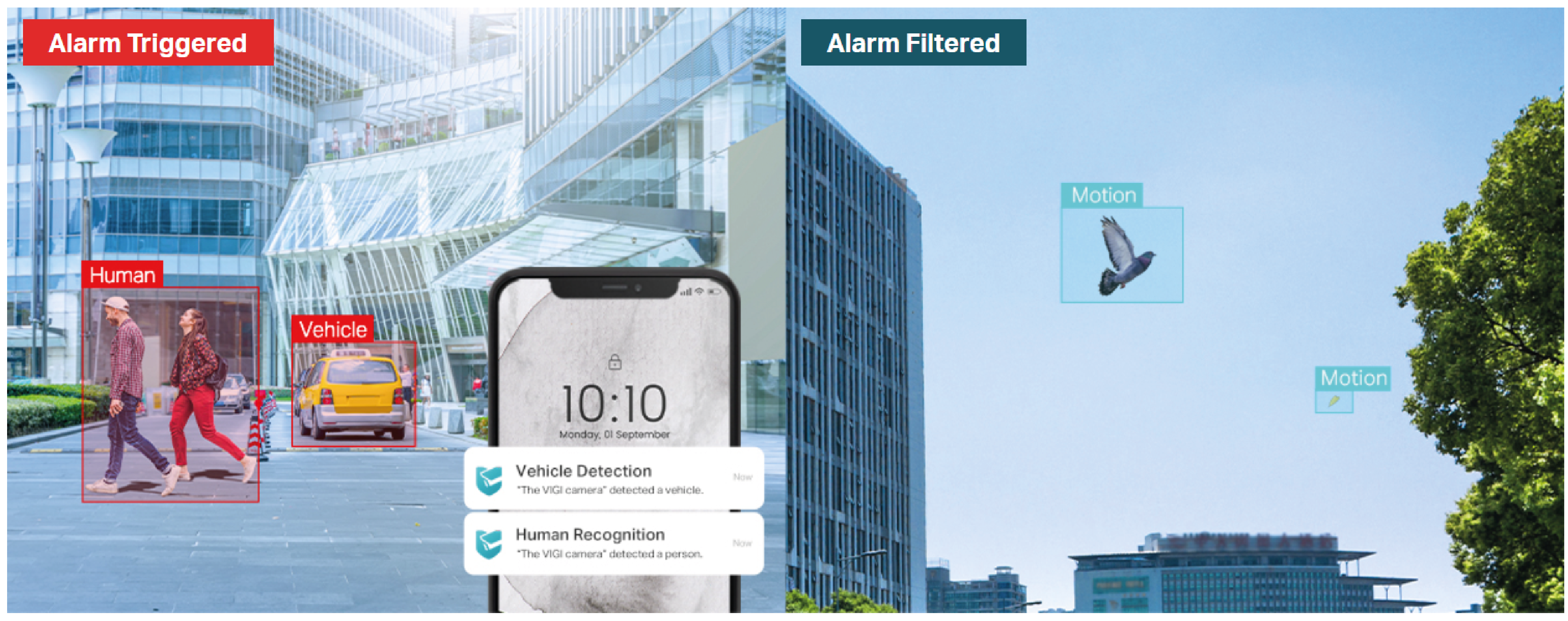 Kamera rozróżnia ludzi i pojazdy od innych obiektów, dzięki czemu możesz otrzymywać dokładniejsze powiadomienia o zdarzeniach.