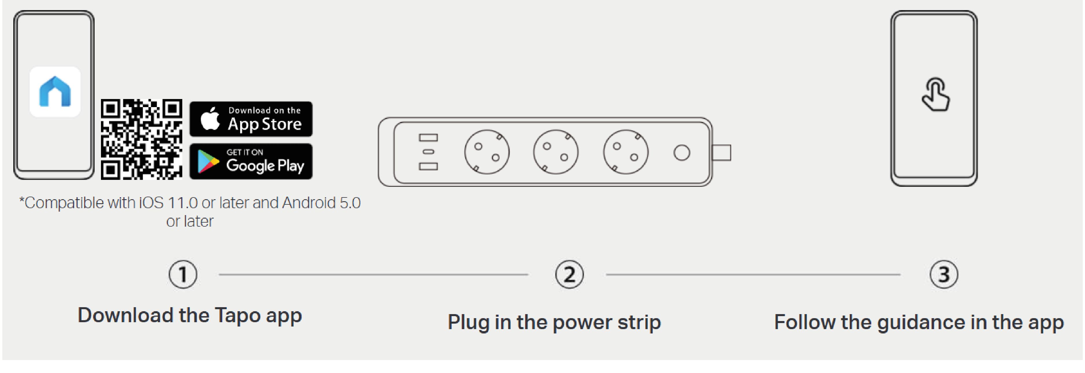 TP-Link Tapo P300 to listwa zasilająca wyposażona w trzy indywidualnie sterowane gniazda sieciowe typu E (UE), komunikująca się w standardzie Wi-Fi 4 (IEEE 802.11b/g/n) w paśmie 2,4 GHz. Posiada dodatkowo trzy stałe porty USB do ładowania urządzeń: jeden port USB-C (z Power Delivery 18 W) oraz dwa porty USB-A (z Quick Charge 3.0 18 W), przy czym porty USB nie podlegają zdalnej kontroli. Maksymalna obciążalność prądowa listwy to 10 A przy maksymalnej mocy obciążenia 2300 W (lub do 3000 W w zależności od wersji/regionu). Zasilana jest prądem zmiennym AC 220-240 V, 50/60 Hz. Urządzenie nie wymaga dodatkowego huba i jest zarządzane poprzez aplikację mobilną Tapo. Zapewnia ochronę przeciwprzepięciową, przeciążeniową oraz przed przegrzaniem. Długość kabla zasilającego wynosi 1,5 metra.