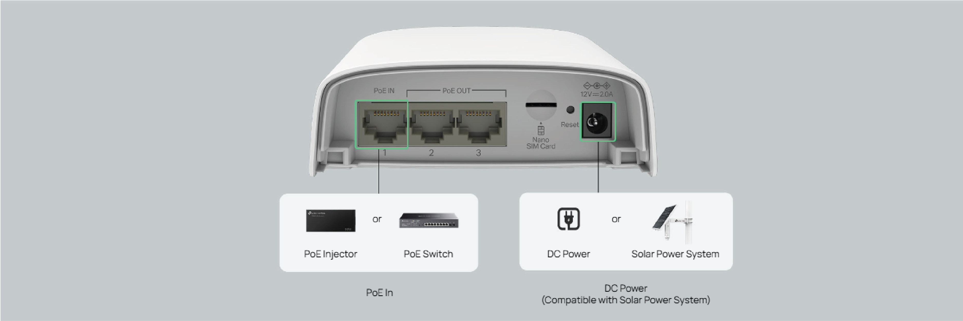 Możliwość zasilania przez PoE lub DC (zgodnego z panelami słonecznymi) pokonuje ograniczenia dostępu do sieci.