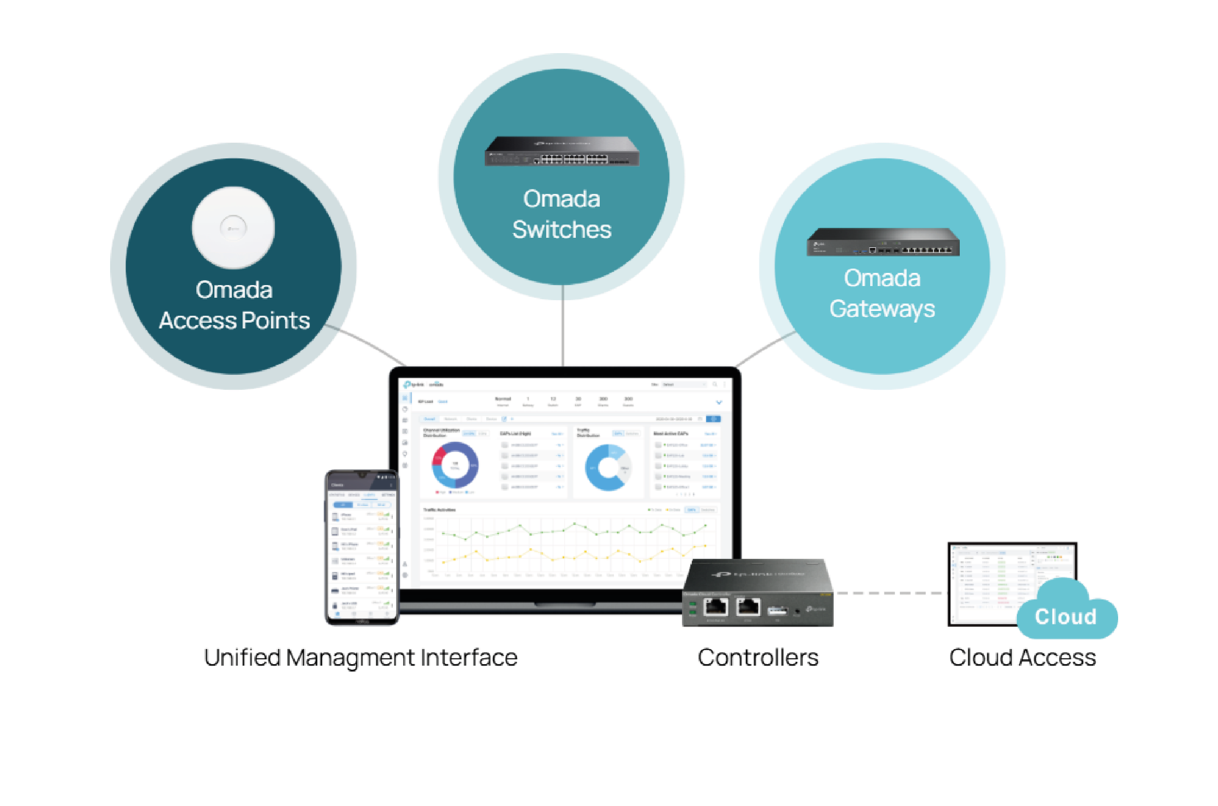 | Scentralizowane zarządzanie | Kontroler Omada oparty na Chmurze Kontroler sprzętowy Omada Kontroler programowy Omada |