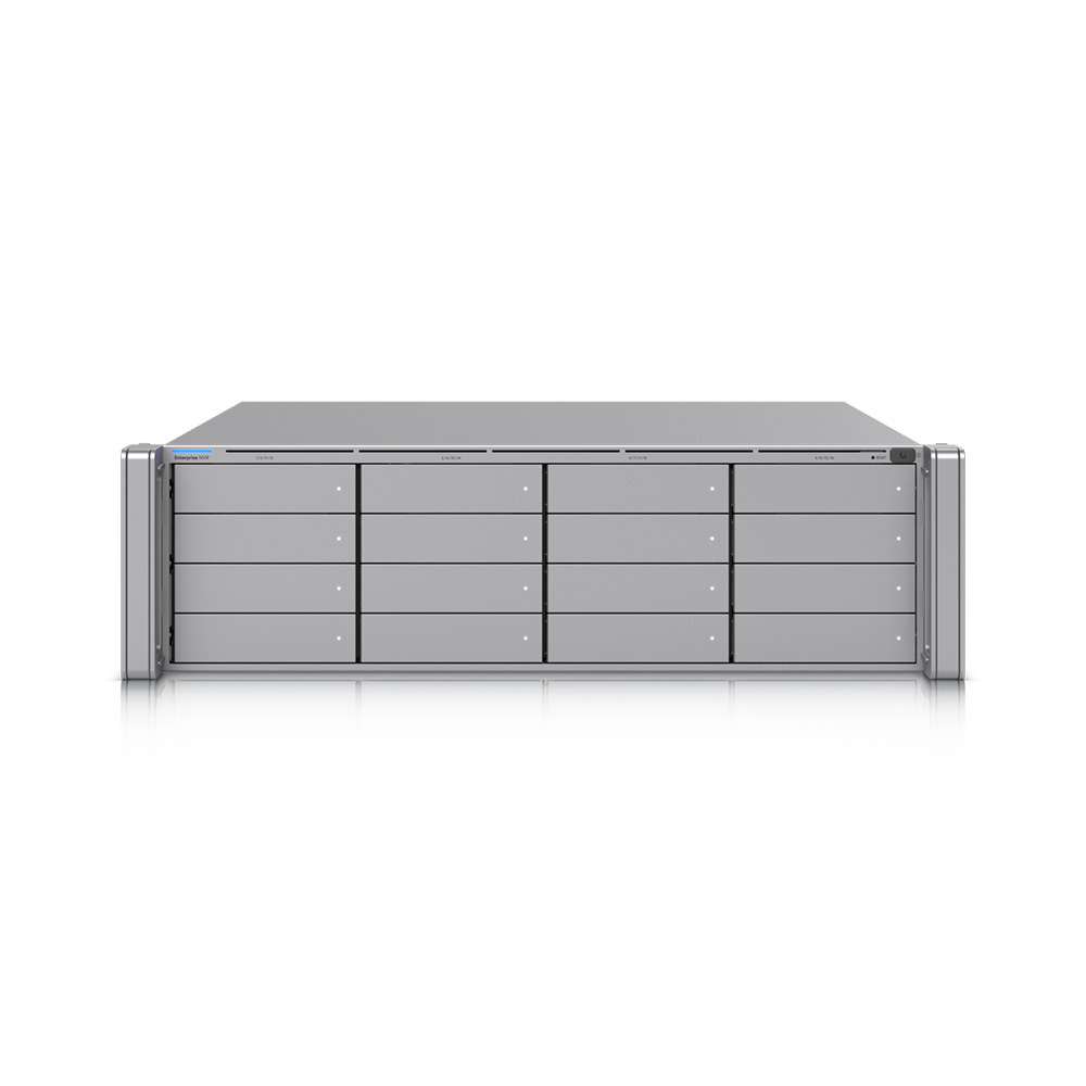 Ubiquiti Enterprise Network Video Recorder to rejestrator IP przeznaczony do wykorzystania w systemie UniFi Protect. Pozwoli ci podłączyć łącznie do 210 kamer HD, 140 kamer 2K lub 70 kamer 4K, doskonale sprawdzi się w rozbudowanych sieciach, w których znajduje się wiele kamer. Urządzenie posiada 16 kieszeni na dyski twarde 2.5/3.5", możesz zastosować dyski HDD lub SSD. System wspiera RAID 5, RAID 6 oraz RAID 10 w celu zapewnienia niezawodności pracy. Rejestrator jest wyposażony w 2 sloty SFP+ (10G) i 1 port 10G Ethernet, co pozwala na zapewnienie dużej przepustowości transmisji. W zestawie znajdziesz dwa moduły zasilające AC typu hot-swap o mocy 550 W każdy, moduły działają redundantnie, w przypadku awarii jednego pracę podejmuje drugi. Maksymalny pobór mocy całego ENVR to 410 W, budżet mocy dysków twardych wynosi 310 W.