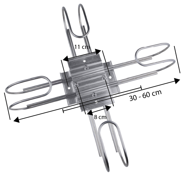 Oferowany produkt to stelaż zapasu kabla z możliwością regulacji w zakresie 30 - 60 cm. Został wykonany z aluminium (korpus) oraz stali galwanizowanej (ramiona i śruby). Jest przystosowany do montażu na słupie przy pomocy taśmy stalowej lub metalowych opasek zaciskowych. Rozstaw ramion możesz regulować również po zamontowaniu stelaża, śruby są łatwo dostępne.