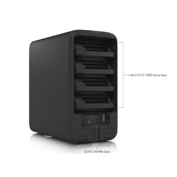 4x HDD 2.5" / 3.5" 2x M.2 NVMe SSD |