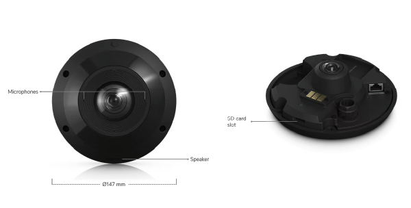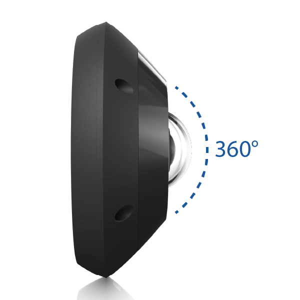 Urządzenie posiada szerokokątny obiektyw typu Fisheye, pole widzenia wynosi 180° pionowo i 180° poziomo, co przekłada się na możliwość obserwacji pola 360°. Dzięki tak dużemu zakresowy pozwoli ci w niektórych lokalizacjach zredukować liczbę wykorzystywanych kamer.