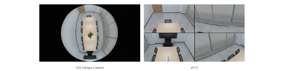 Jedna kamera z efektem rybiego oka może pełnić funkcję wielu kamer, zapewniając proste i kompleksowe rozwiązanie monitoringu. Przykładowo, w trybie 4PTZ, InSight S655I działa jak 4 kamery, oferując pełne pokrycie zasięgu i podgląd z różnych perspektyw.