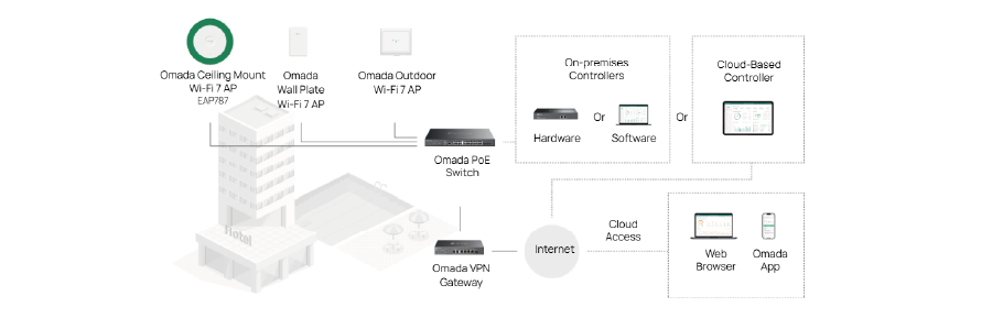 | Scentralizowane zarządzanie | Omada Central (oparta na Chmurze) Kontroler sprzętowy Omada Kontroler programowy Omada |
