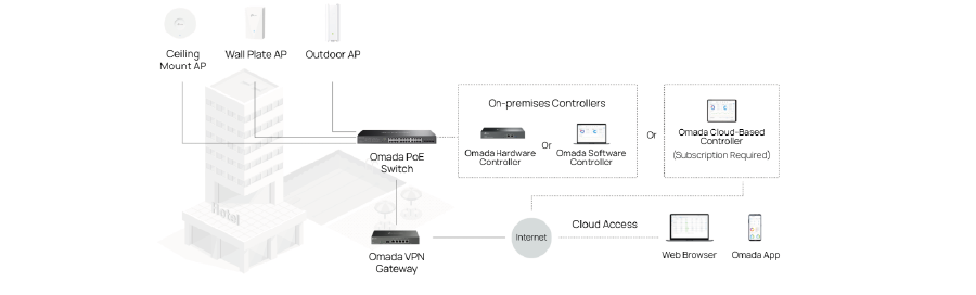 | Scentralizowane zarządzanie | Kontroler Omada oparty na Chmurze Kontroler sprzętowy Omada Kontroler programowy Omada |