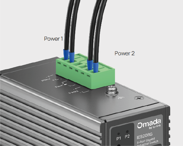 Dwa wejściowe złącza zasilania z szerokim zakresem napięcia 9,6-60V DC zapewniają ciągła pracę urządzenia nawet wtedy, gdy jeden zasilacz zawiedzie.