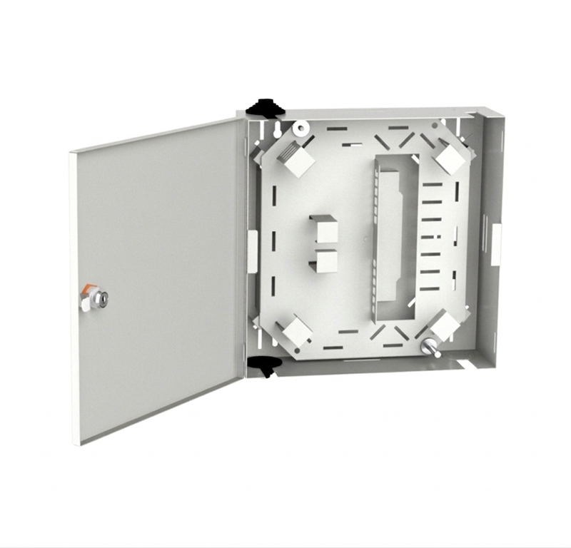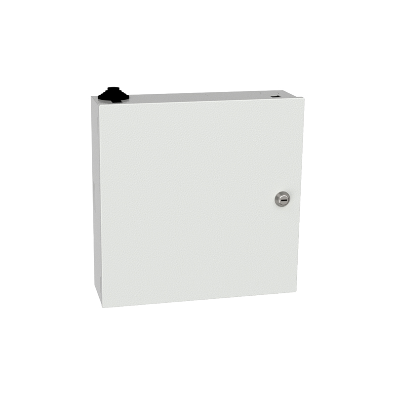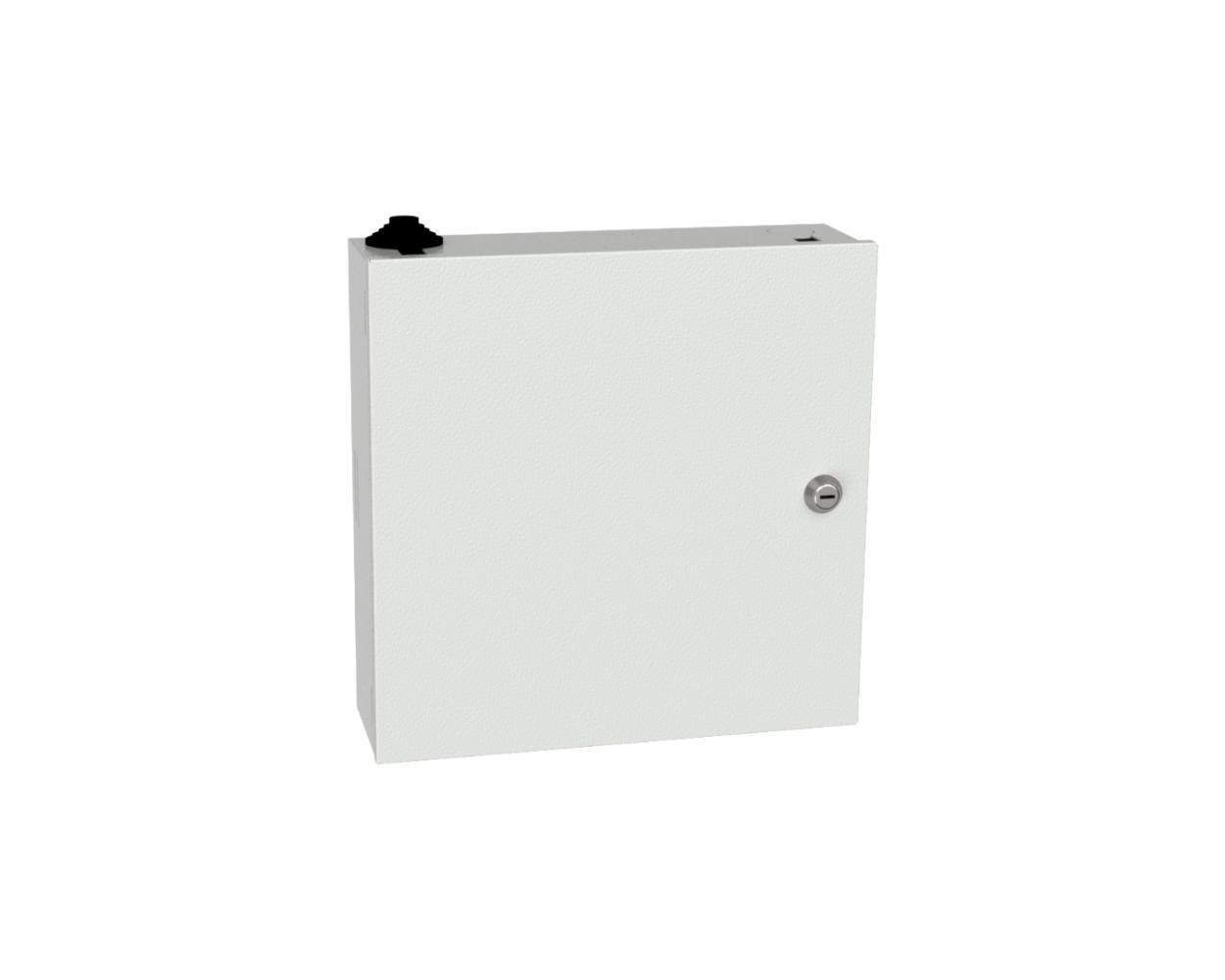 Oferowany produkt to przełącznica dostępowa przeznaczona do montażu naściennego wewnątrz budynków. Został wykonany z blachy stalowej pokrytej powłoką Magnelis i polakierowany w kolorze jasnoszarym RAL7035. Producent zastosował pełne drzwi zabezpieczone standardowym, piórowym zamkiem. Stopień ochrony wynosi IP41, a odporność mechaniczna IK10.
