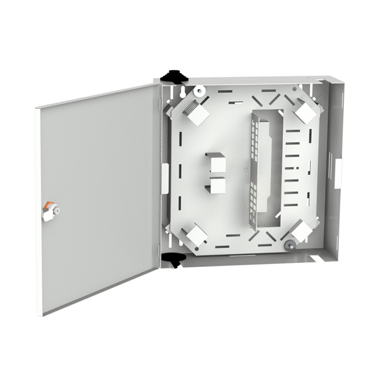 Oferowany produkt to przełącznica dostępowa przeznaczona do montażu naściennego wewnątrz budynków. Został wykonany z blachy stalowej pokrytej powłoką Magnelis i polakierowany w kolorze jasnoszarym RAL7035. Producent zastosował pełne drzwi zabezpieczone standardowym, piórowym zamkiem. Stopień ochrony wynosi IP41, a odporność mechaniczna IK10.