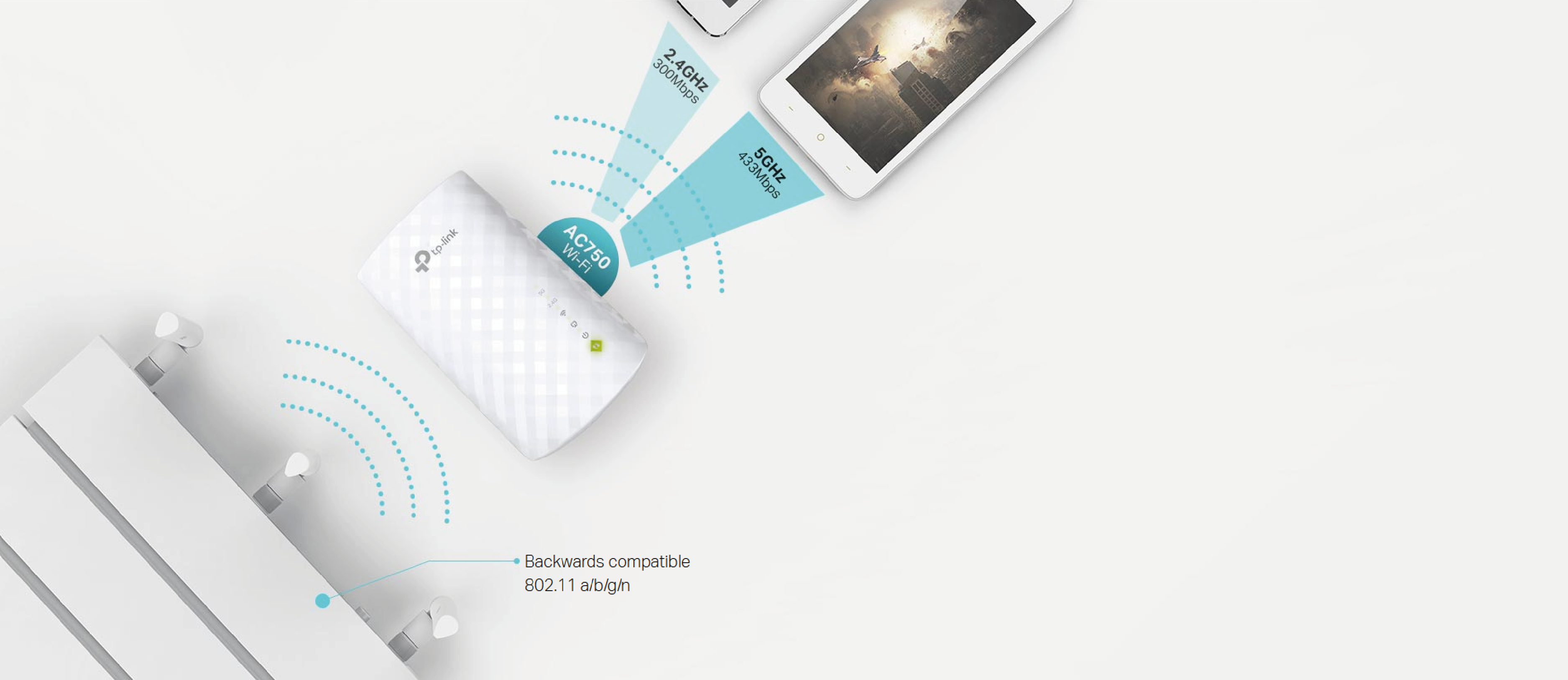 Umieść RE200 pomiędzy routerem a swoimi urządzeniami bezprzewodowymi, aby rozszerzyć zasięg sieci Wi-Fi i pozbyć się problemu "martwych stref". Korzystaj z doskonałego połączenia bezprzewodowego w całym domu lub biurze. Dwa pasma Wi-Fi o łącznej przepustowości dochodzącej do 750 Mb/s, w rozszerzonej sieci obejmą powierzchnię nawet 185 m2 i umożliwią użytkownikowi korzystanie z szybkich połączeń, a tym samym transmisję filmów bez zakłóceń w jakości HD, granie online oraz wiele innych obciążających sieć czynności.