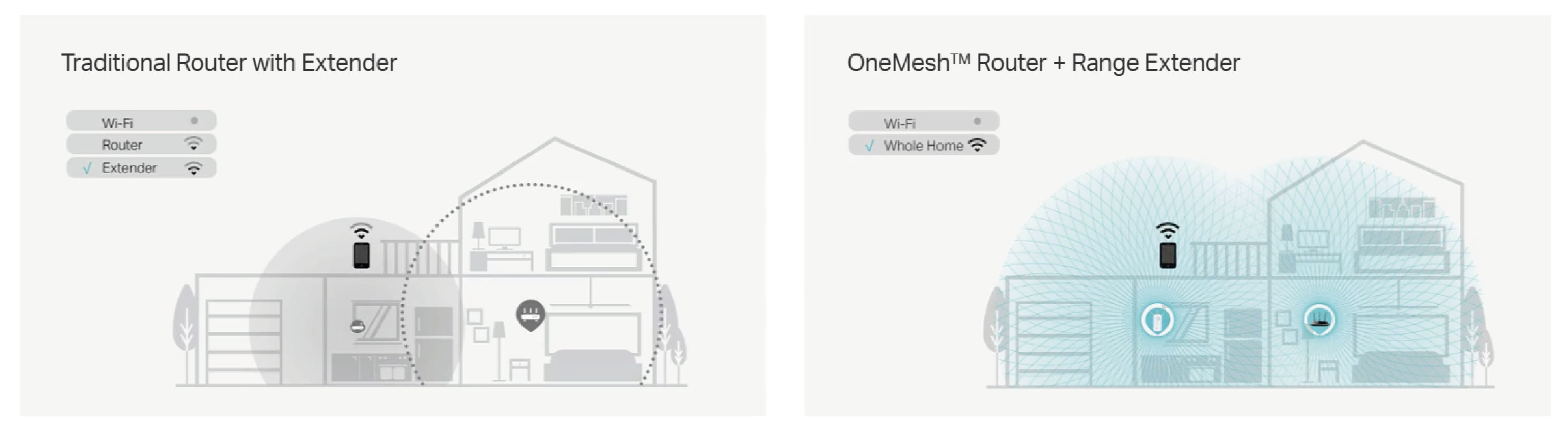 OneMesh™ to prosty sposób na utworzenie sieci Mesh z jedną nazwą Wi-Fi. Wystarczy połączyć wzmacniacz OneMesh™ z routerem OneMesh™ i cieszyć się stabilnym, płynnym połączeniem w całym domu.