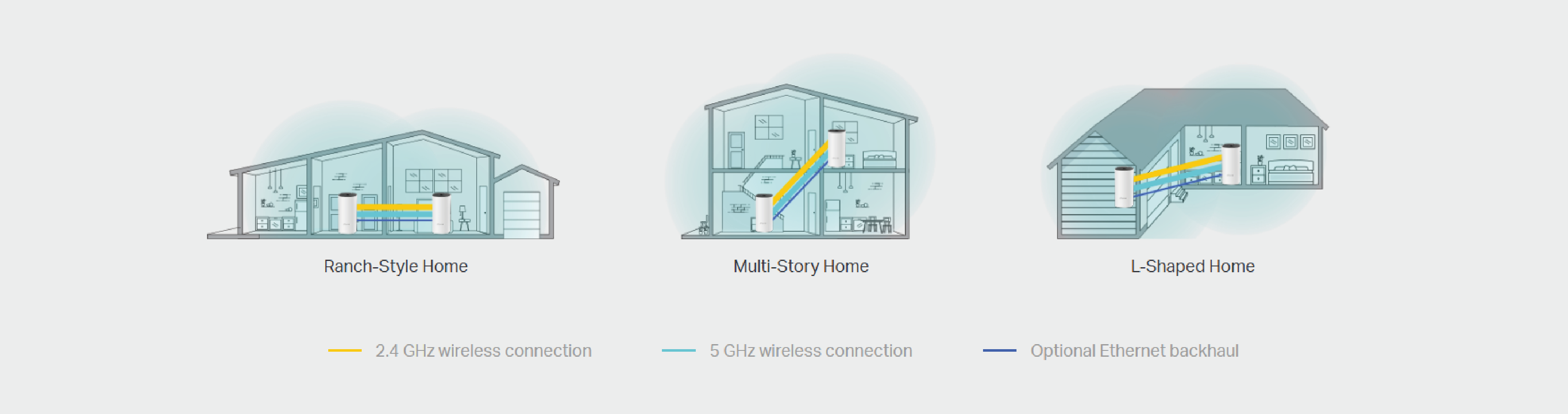 Deco to najprostszy sposób na silny sygnał bezprzewodowy na całej powierzchni twojego domu. Jedna jednostka Deco pokrywa siecią powierzchnię do 180 m2. Połączenia bezprzewodowe i opcjonalne łącze rezerwowe Ethernet łączą jednostki Deco, zapewniając jeszcze szybszą sieć i najbardziej płynny roaming. Potrzebujesz większego zasięgu Wi-Fi? Wystarczy dodać kolejną jednostkę Deco.