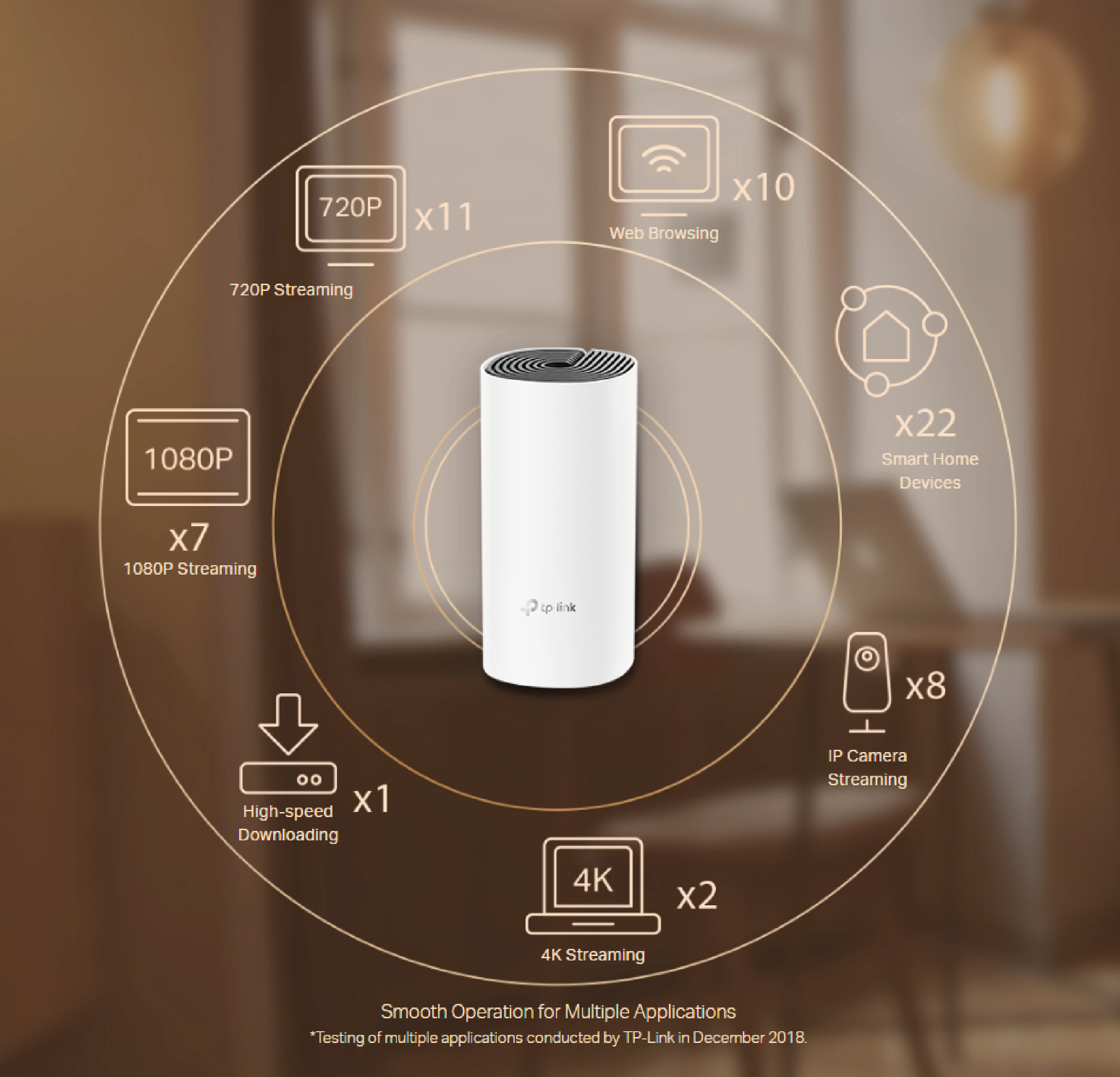 Dzięki technologii 802.11ac i prędkościom nawet trzy razy szybszym niż w starszych generacjach routerów, Deco może zapewnić szybkie połączenie bez opóźnień nawet dla 100 urządzeń.