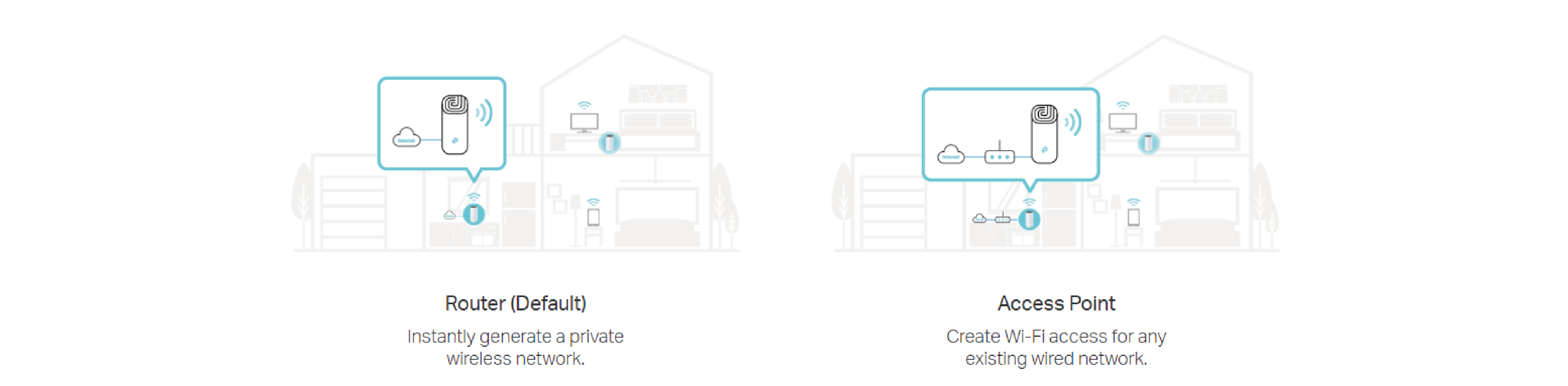 Wielofunkcyjne urządzenie Deco M4 może służyć zarówno jako router, jak i punkt dostępowy. Wybieraj na bieżąco najbardziej optymalny tryb i ciesz się maksymalną elastycznością sieci.