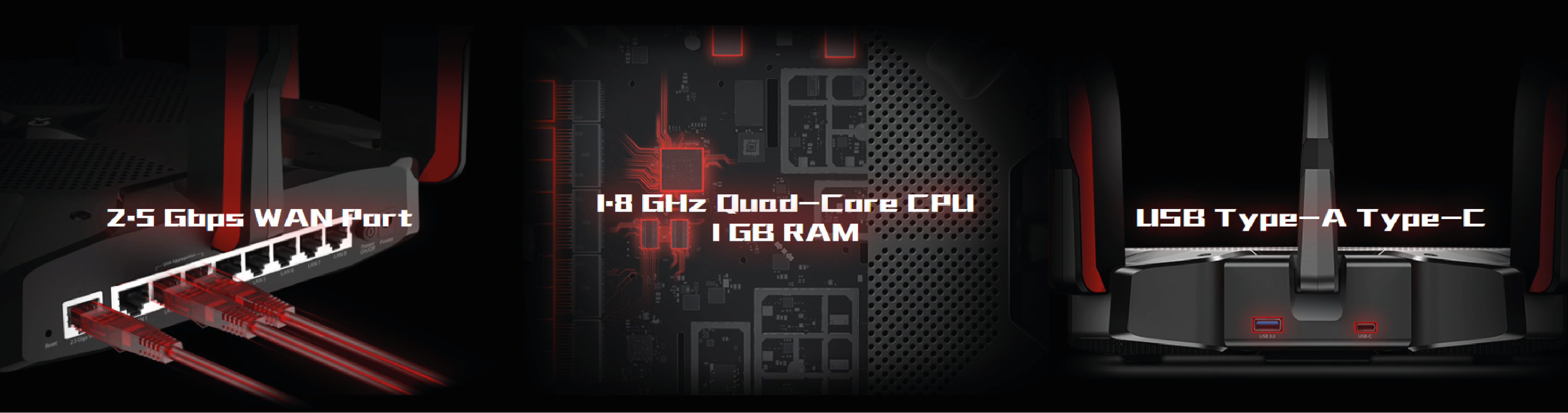 Archer AX11000 wyposażony w czterordzeniowy procesor o taktowaniu 1,8 GHz i 1 GB pamięci RAM doskonale radzi sobie z dużą przepustowością i eliminuje lagi. Dzięki funkcji agregacji łączy i portom USB 3.0 typu C i A niemal każde urządzenie może połączyć się z twoją siecią domową.