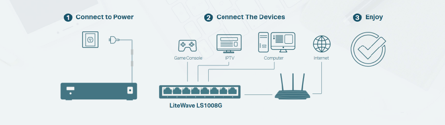 | Zawartość opakowania | Przełącznik niezarządzalny LS1008G Zasilacz Instrukcja instalacji |