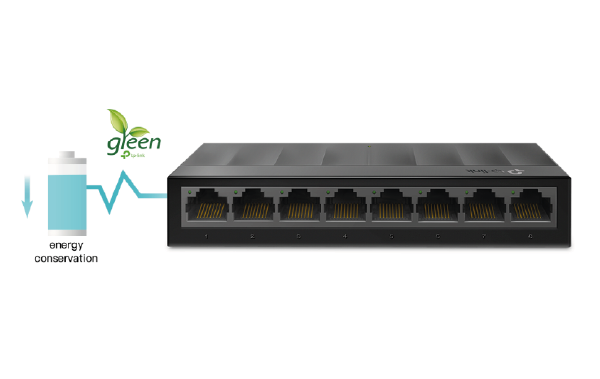 Przełącznik sieciowy TP-Link LS1008G jest urządzeniem warstwy drugiej wyposażonym w osiem portów RJ45 obsługujących standardy 10BASE-T, 100BASE-TX oraz 1000BASE-T. Każdy z portów posiada funkcję automatycznej negocjacji szybkości połączenia oraz automatycznego krosowania MDI/MDIX, co eliminuje konieczność stosowania kabli krosowych. Urządzenie pracuje w oparciu o architekturę przekazywania ramek typu store-and-forward, co zapewnia integralność danych poprzez weryfikację sum kontrolnych pakietów przed ich dalszą transmisją. Zastosowana technologia kontroli przepływu IEEE 802.3x dla trybu pełnego dupleksu oraz backpressure dla trybu półdupleksu zapobiega utracie danych podczas przeciążeń sieci. Jednostka charakteryzuje się pasywnym chłodzeniem, co wynika z braku wentylatorów wewnątrz plastikowej obudowy przeznaczonej do użytku biurkowego. Zasilanie odbywa się poprzez zewnętrzny adapter dostarczający prąd stały o napięciu 5 V i natężeniu 0,6 A. System zarządzania energią dostosowuje pobór mocy w zależności od statusu połączenia oraz długości podłączonego kabla Ethernet. Urządzenie jest zgodne ze standardami IEEE 802.3i, IEEE 802.3u, IEEE 802.3ab oraz IEEE 802.3x.