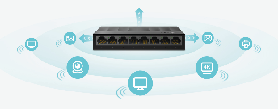 | Porty | 8 portów 10/100/1000Mb/s, Autonegocjacja, Auto-MDI/MDIX |