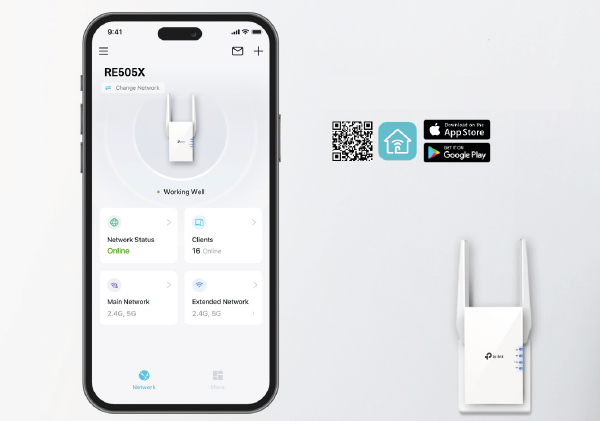 RE505X bezprzewodowo łączy się z twoim routerem, aby doprowadzić sygnał Wi-Fi 6 do każdego zakamarka. Nie musisz ograniczać się we własnym domu. Leniwą niedzielę z ciepłą herbatą, kocykiem i ulubionym serialem możesz spędzić w dowolnym pomieszczeniu.