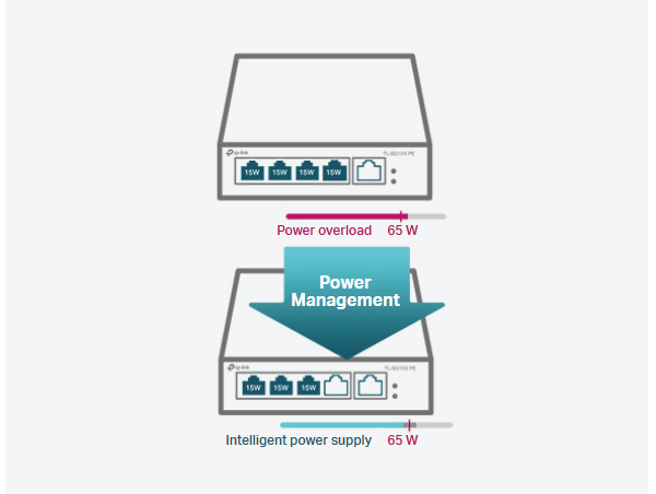 TL-SG105PE zapewnia użytkownikom możliwość monitorowania sieci i kontrolowania zmian w ruchu sieciowym. Korzystając ze strony konfiguracyjnej lub narzędzia do zarządzania użytkownik ma dostęp do wielu użytecznych funkcji, w tym monitorowania sieci, priorytetyzacji ruchu, a także usprawnionej usługi QoS.