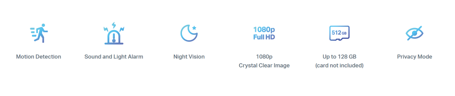 TP-Link Tapo C100 to kamera Wi-Fi do monitoringu domowego, rejestrująca wideo w rozdzielczości Full HD (1080p) przy użyciu 2-megapikselowej matrycy. Łączność realizowana jest przez Wi-Fi w paśmie 2,4 GHz (802.11 b/g/n). Kamera wyposażona jest w tryb nocny IR (widoczność do 9 metrów) oraz dwukierunkową komunikację audio. Materiał jest kompresowany kodekiem H.264 i może być zapisywany na lokalnej karcie MicroSD (do 128 GB). Funkcje obejmują detekcję ruchu i powiadomienia, a zarządzanie odbywa się poprzez aplikację mobilną Tapo.