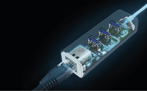 UE330 działa również jako gigabitowa karta sieciowa Ethernet i pozwala połączyć twojego ultrabooka, chromebooka, laptop lub komputer do stabilnej i szybkiej sieci przewodowej.