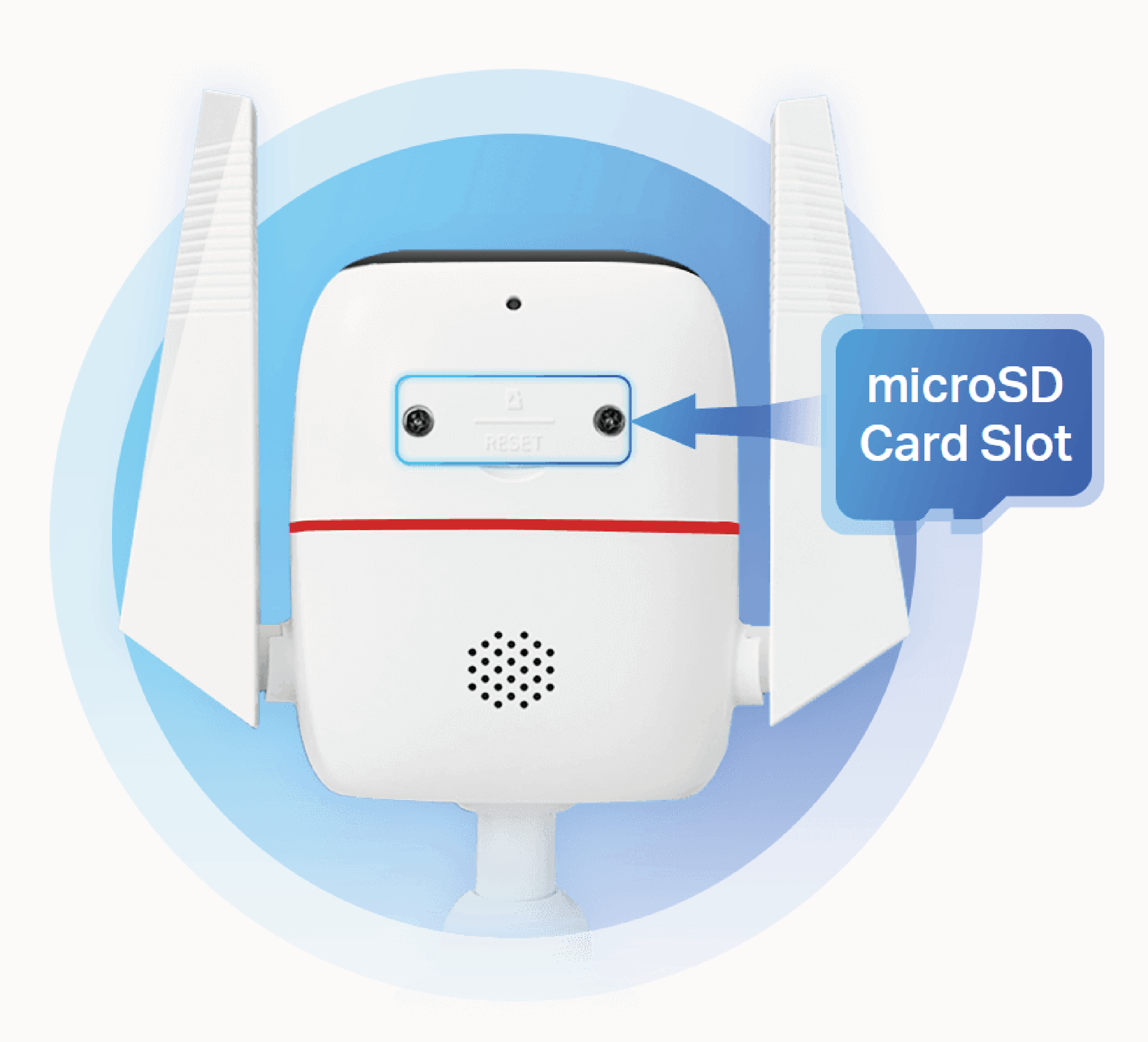 Po włożeniu karty microSD zyskasz możliwość zapisu gigabajtów nagrań wideo w wysokiej rozdzielczości 3 Mpx oraz zachowasz do nich stały wgląd.