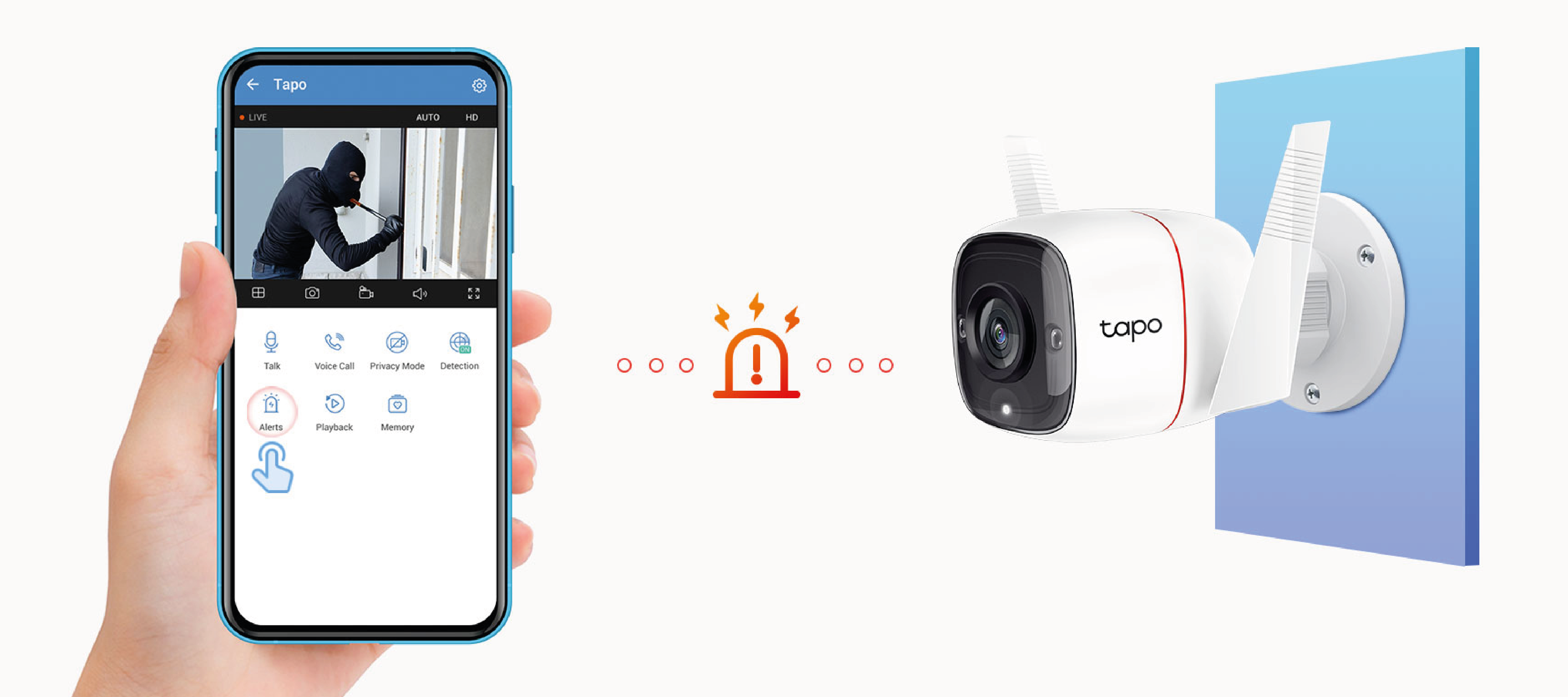 Gdy kamera wykryje podejrzany ruch, wyśle ci powiadomienie. Ale nie tylko - uruchomi także alarm świetlny i dźwiękowy, by odstraszyć intruza.