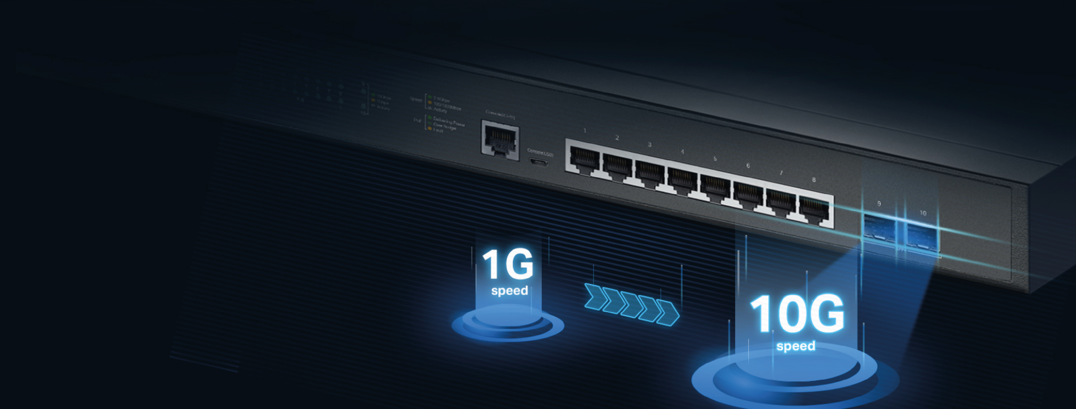 Dwa sloty SFP+ o prędkości 10 Gb/s zapewniają nieblokującą się wydajność przełączania i redukują opóźnienia do minimum. Dzięki temu połączenia z serwerami i innymi przełącznikami nawiązywane są błyskawicznie i odznaczają się niezawodnością.