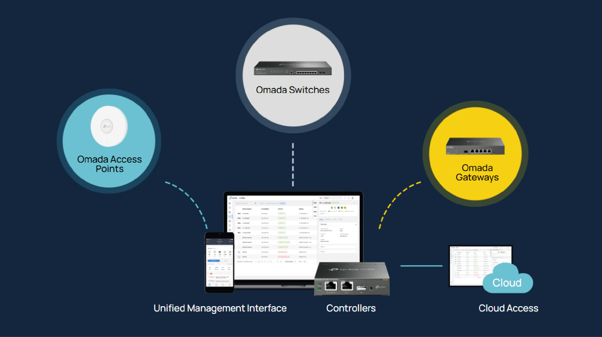 Platforma do programowego sterowania infrastrukturą sieciową (SDN) Omada integruje działanie urządzeń sieciowych, w tym punktów dostępowych, przełączników i bram sieciowych, zapewniając w 100% scentralizowane zarządzanie w Chmurze. Omada umożliwia tworzenie wysoce skalowalnej sieci — w pełni kontrolowanej z poziomu jednego interfejsu. Przekłada się to na płynne połączenia przewodowe i bezprzewodowe, które są niezbędne w hotelarstwie, szkolnictwie, sprzedaży detalicznej, biurach i w wielu innych branżach oraz placówkach.
