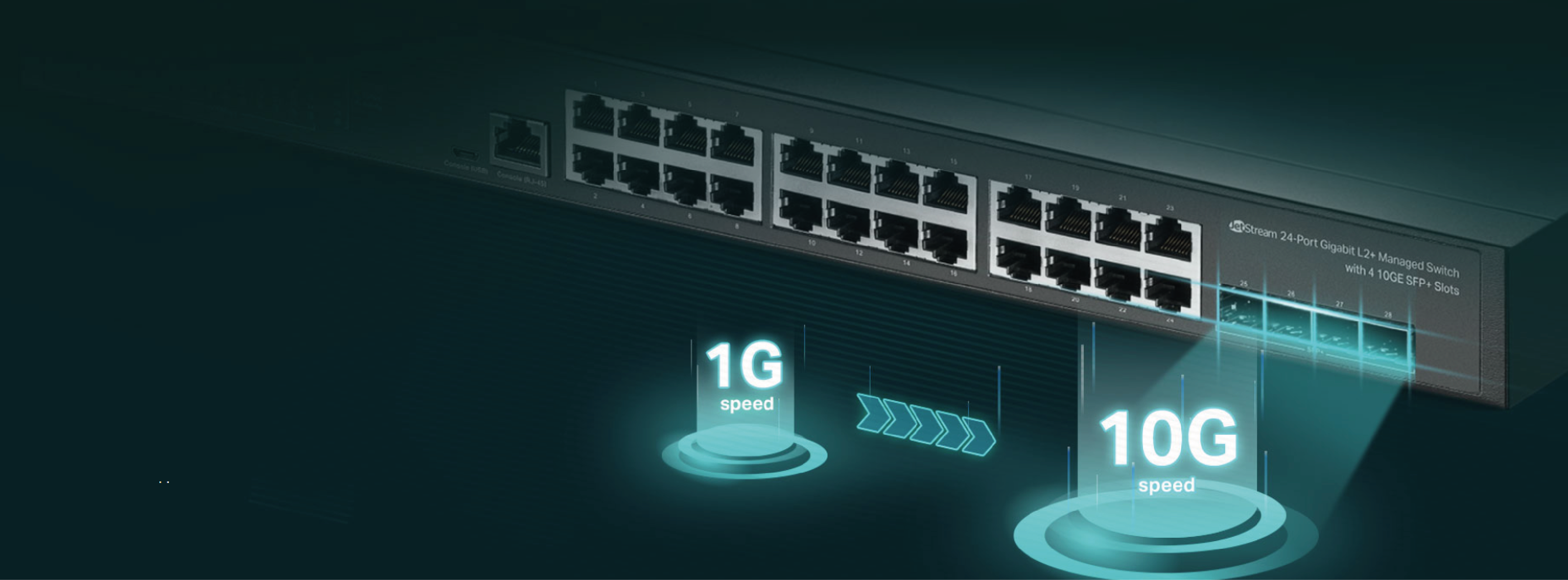 4 sloty SFP+ 10 Gb/s zapewniają przełączanie bez blokowania i ultraniski poziom opóźnień, dzięki czemu łatwo jest zbudować niezawodne i błyskawiczne połączenia z serwerami oraz innymi przełącznikami.